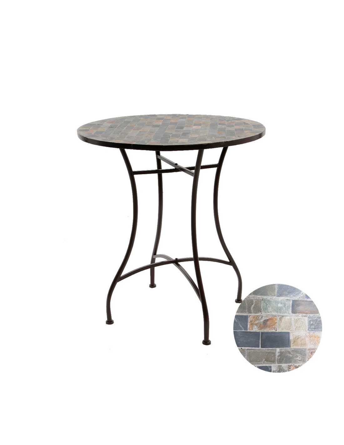 Mesa metalica/mosaico color: marron ø70x77cm (diámetro/altura) modelo stuttgart. peso: 22kg. fabricada con hierro y mosaico de piedra. para exterior