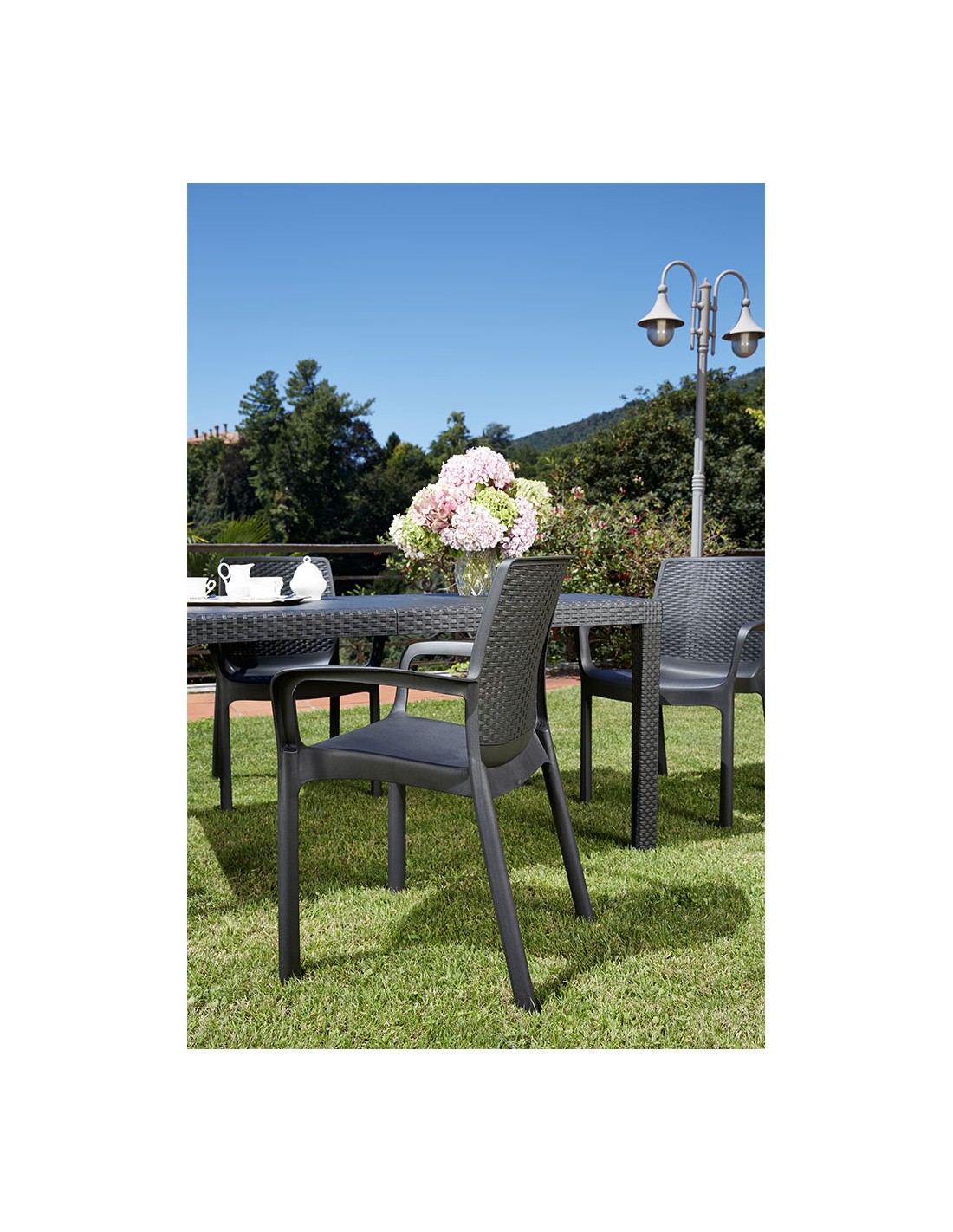 Butaca apilable imitacion rattan. color: antracita 61x54x82cm peso: 3,5kg modelo: regina. fabricado con polipropileno, progarden, no apto para uso profesional, sólo para uso doméstico.