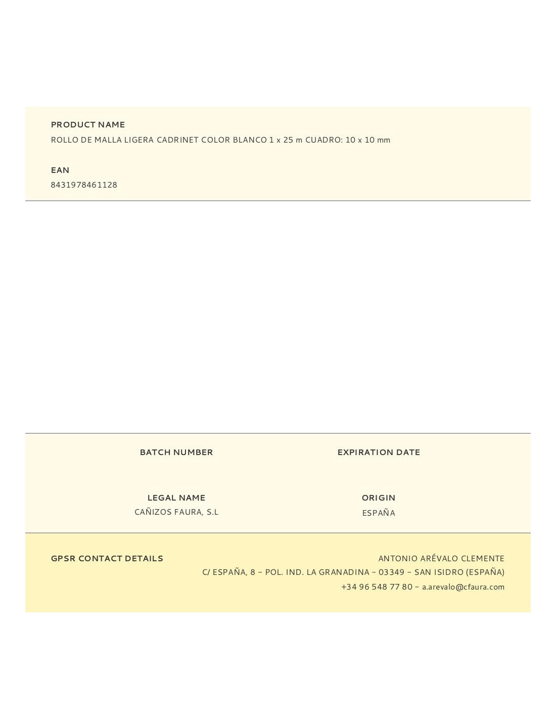 Rollo de malla ligera cadrinet color blanco 1x25m cuadro: 10x10mm material: polipropileno. 300gr. termosoldado. facilmente adaptable a cualquier superficie. tratamiento anti uv. faura