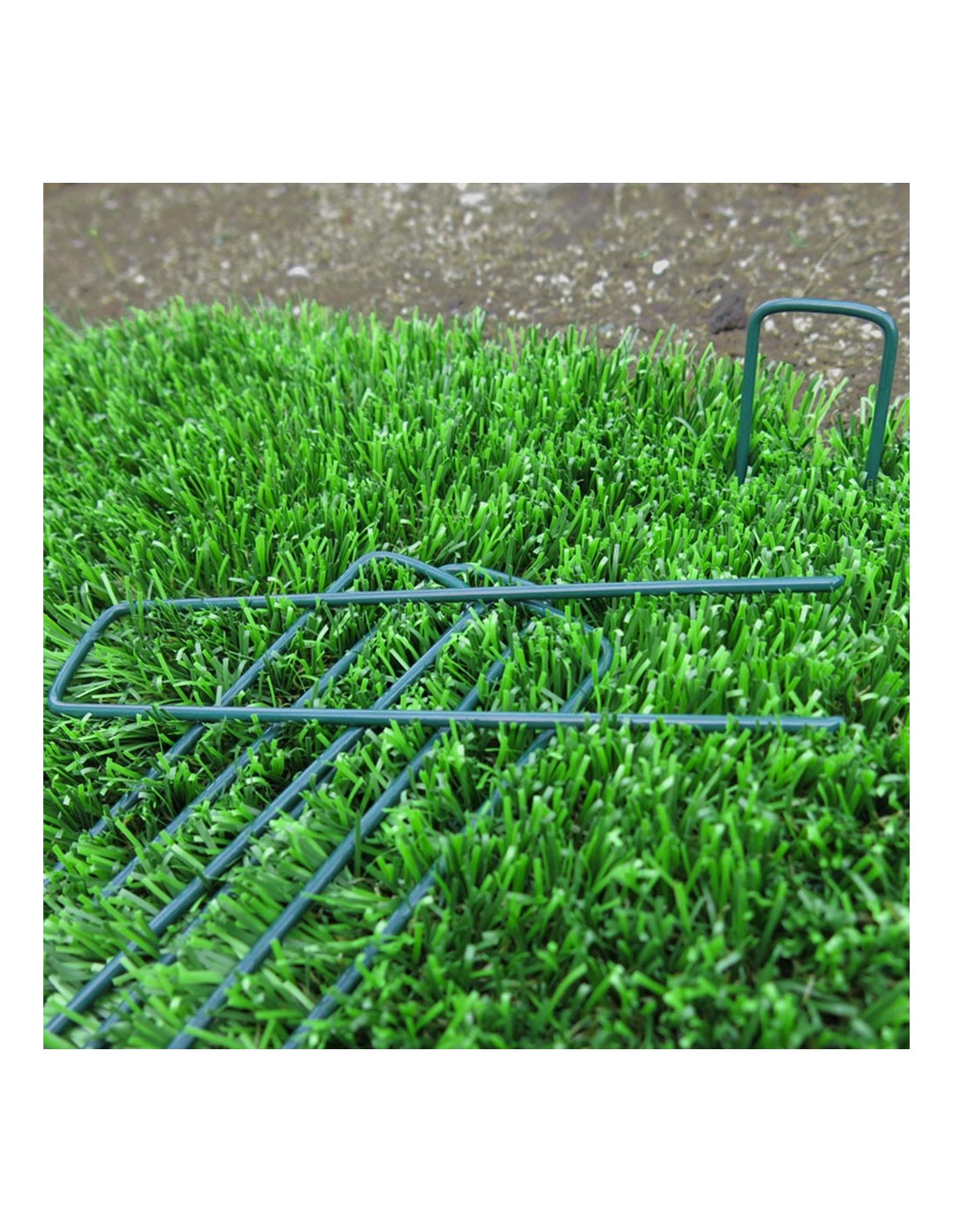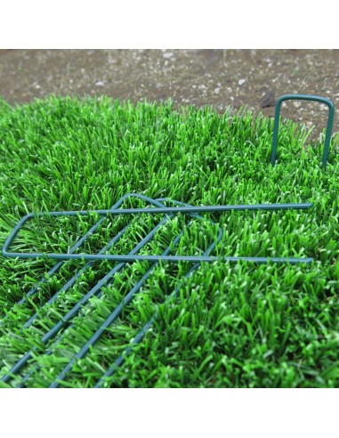 Grapa metalica 17x3,5cm color verde. (bolsa de 10 unid.) grapas metalicas para la sujecion al suelo de mallas antihierbas, geotextiles, cespedes artificiales, etc.faura