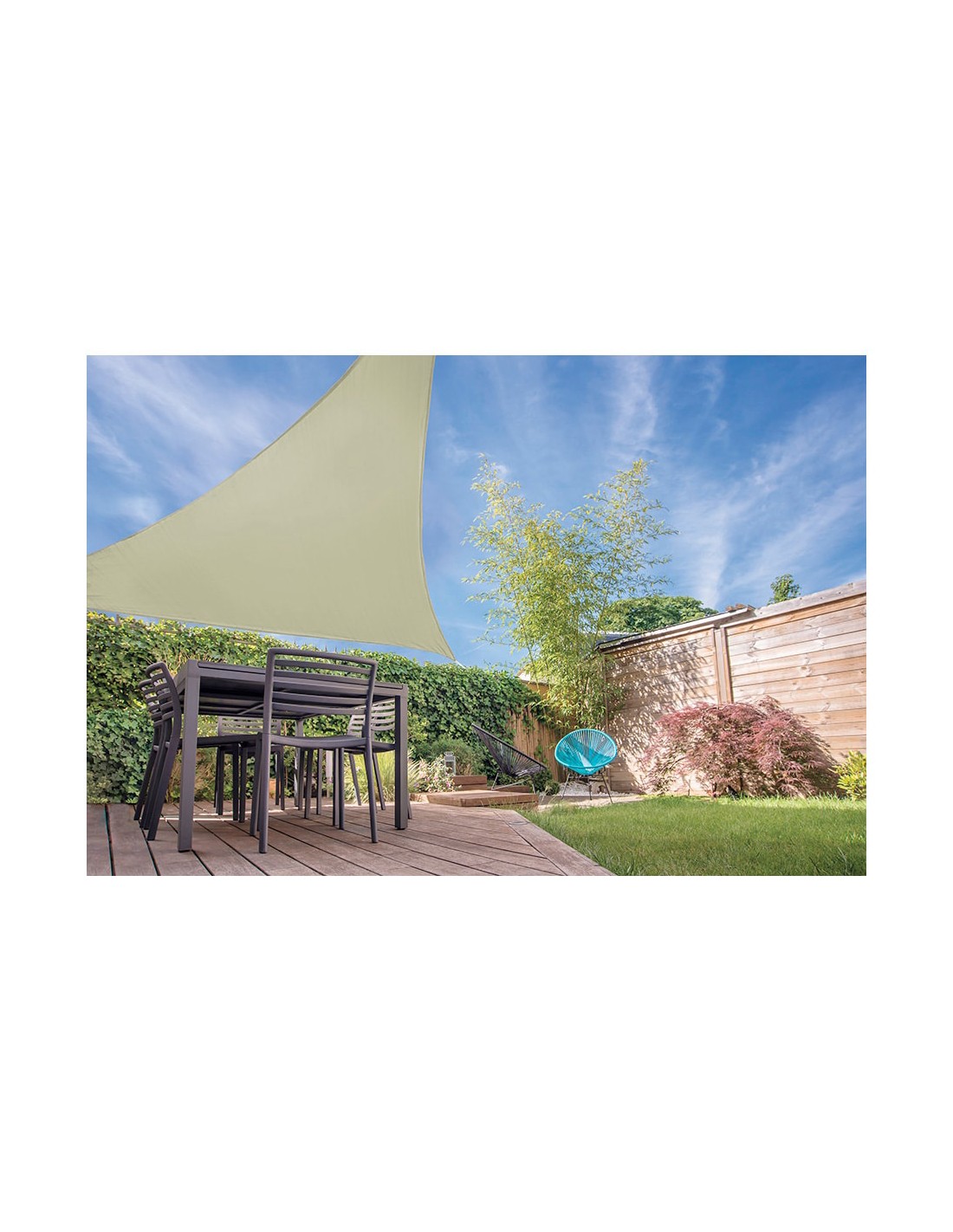 Toldo vela forma de triangulo color: arena 3,6x3,6x3,6m (ancho/fondo/alto) 150gr/m spf+50 con ojales de aluminio. 3 cuerdas de 230cm ambiance
