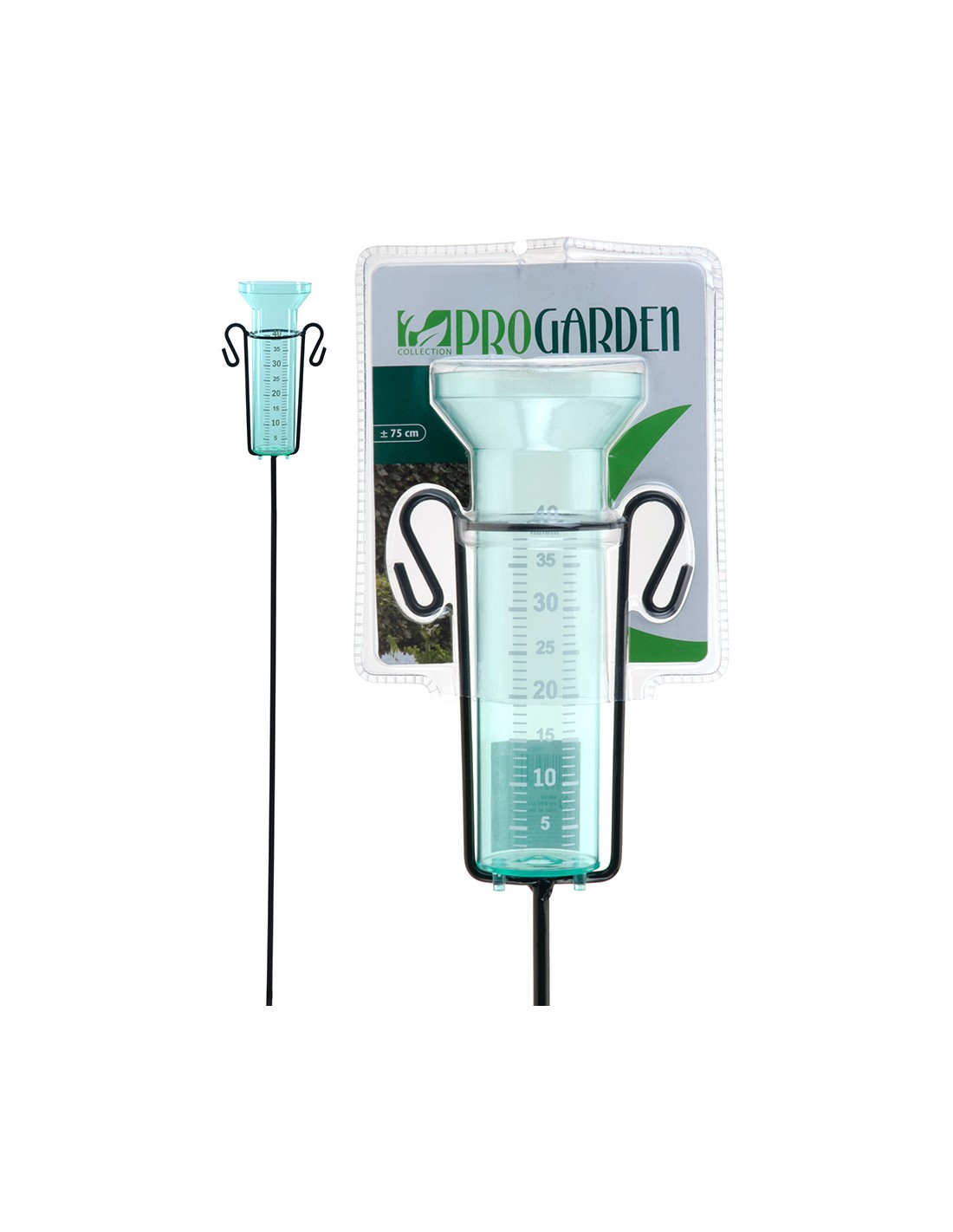 Pluviometro con soporte metálico, transparente.max. 40l/m 75cm. 8.5cm largo. ø7.5cm.