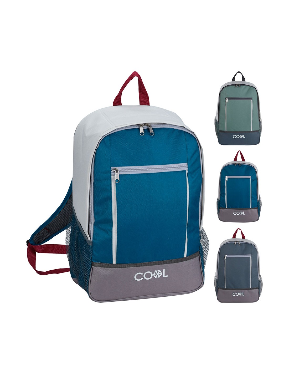 Nevera tipo mochila isotermica 20 l. colores surtidos. medida: 31x16x45cm. 1 compartimento grande con dos tiradores (apertura en cremallera) y otro bolsillo pequeño con cremallera. incluye bolsillo lateral. cool