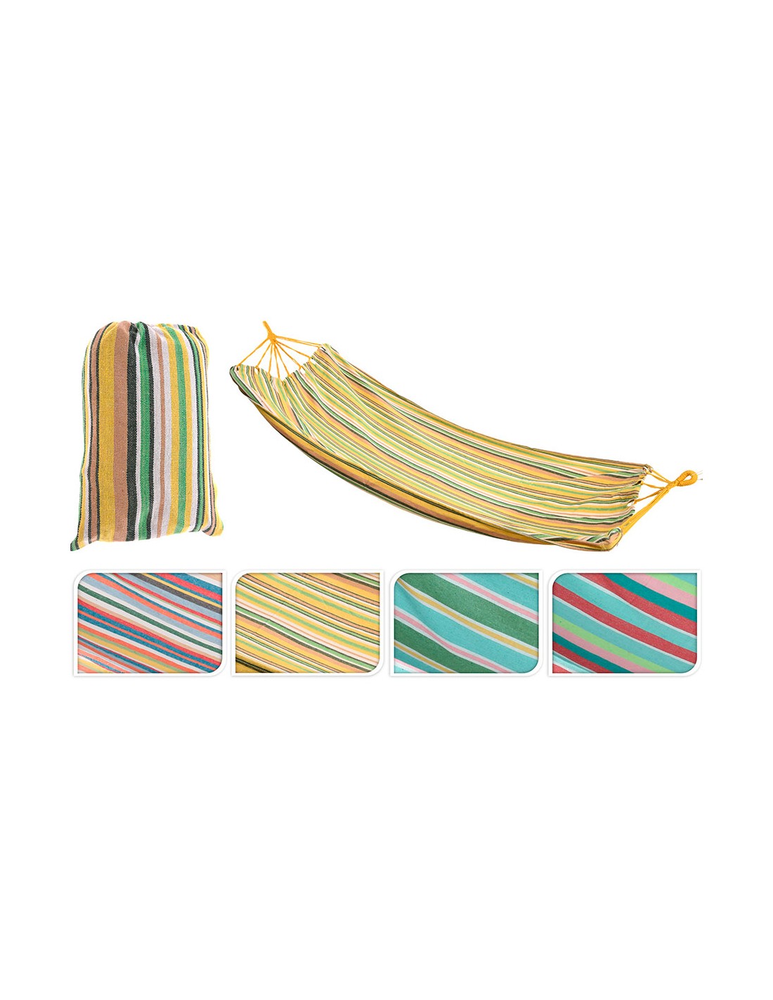 Hamaca de 60% algodón y 40% poliéster medidas: 100x200cm (ancho/largo) modelos surtidos. longitud total con cuerdas 280cm incluye bolsa de transporte