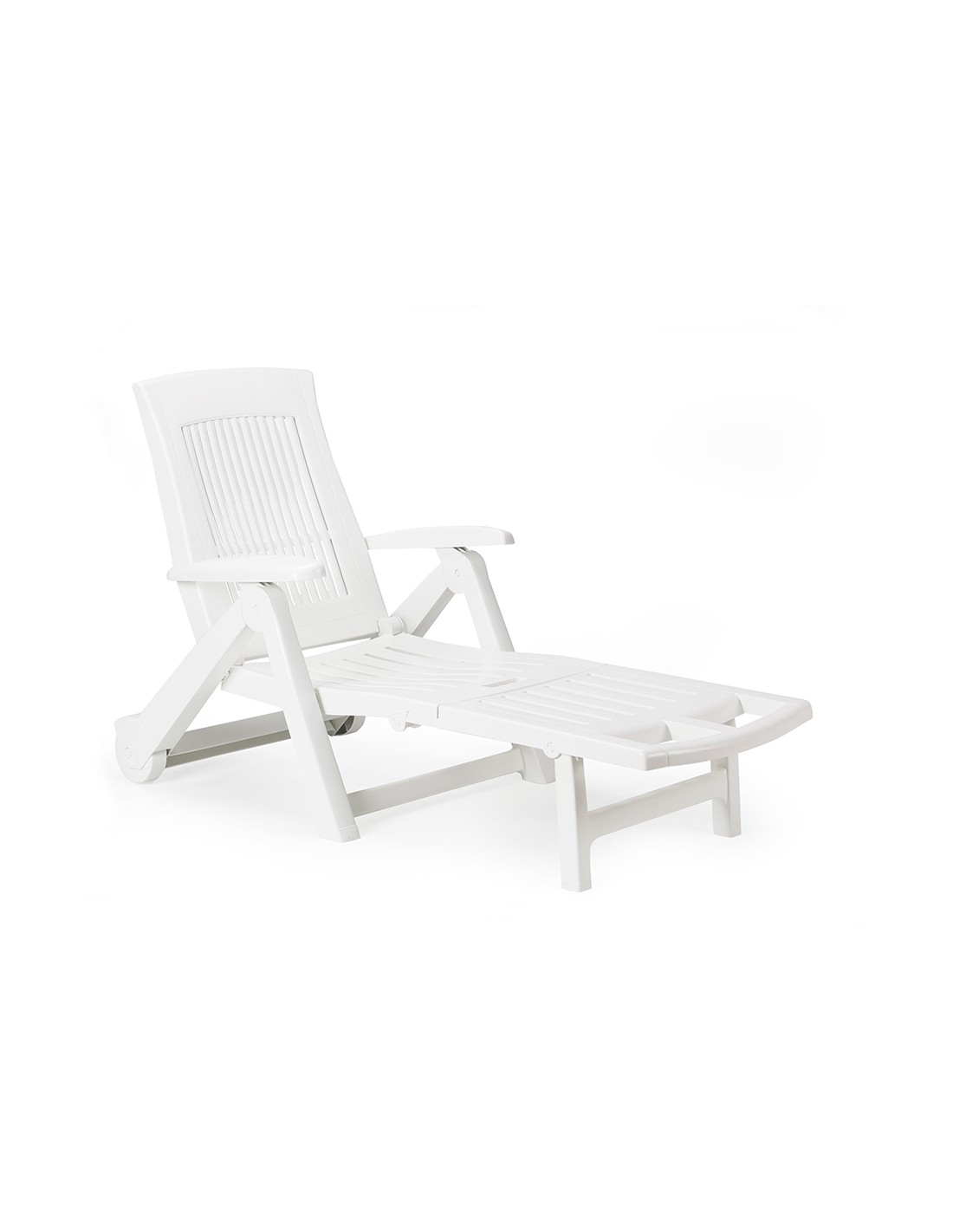 Tumbona plegable con ruedas. color: blanco 72x195x101cm (ancho/fondo/alto) modelo: zircone. peso: 13,4kg. fabricado con polipropileno. ipae progarden. sólo para uso doméstico.