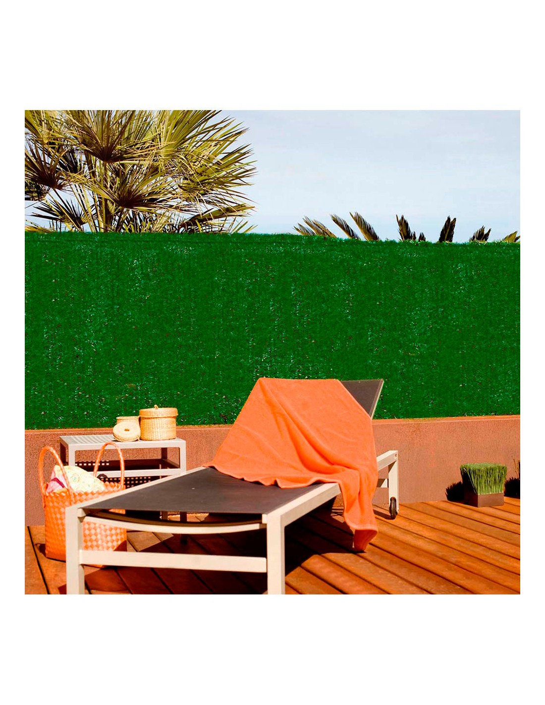 Seto artificial 1x3m seto artificial mixto con laminas de pvc entretegido con alambre plastificado verde. maxima seguridad: los extremos de las varillas estan dobladas para evitad daños, sin necesidad de manteinimiento. material 100% pvc 85% ocultacion, con tratamiento anti-uv. auto-extinguible, n° de varillas por metro lineal: 36. grosor de alambre 0,7mm, dimension de las hojas 72x2mm faura