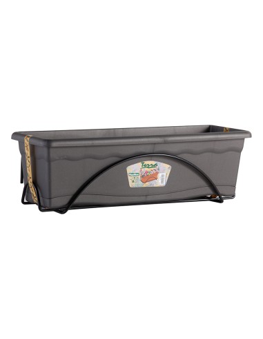 Jardinera con plato integrado 60x24cm (ancho/fondo) + soporte metalico. color antracita. pensada para uso en exteriores por su alta resistencia a los rayos solares, su robustez y su textura