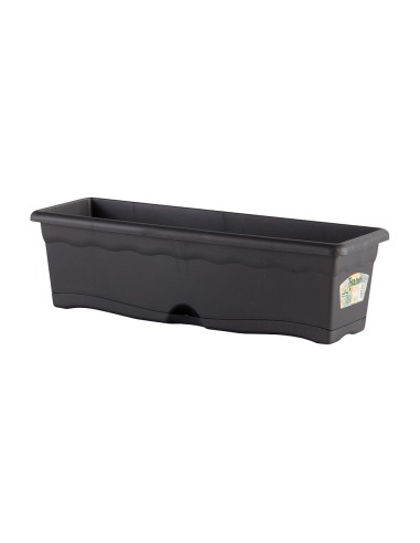 Jardinera con plato integrado color antracita 60x20cm. (ancho/fondo) pensada para uso en exteriores por su alta resistencia a los rayos solares, su robustez y su textura