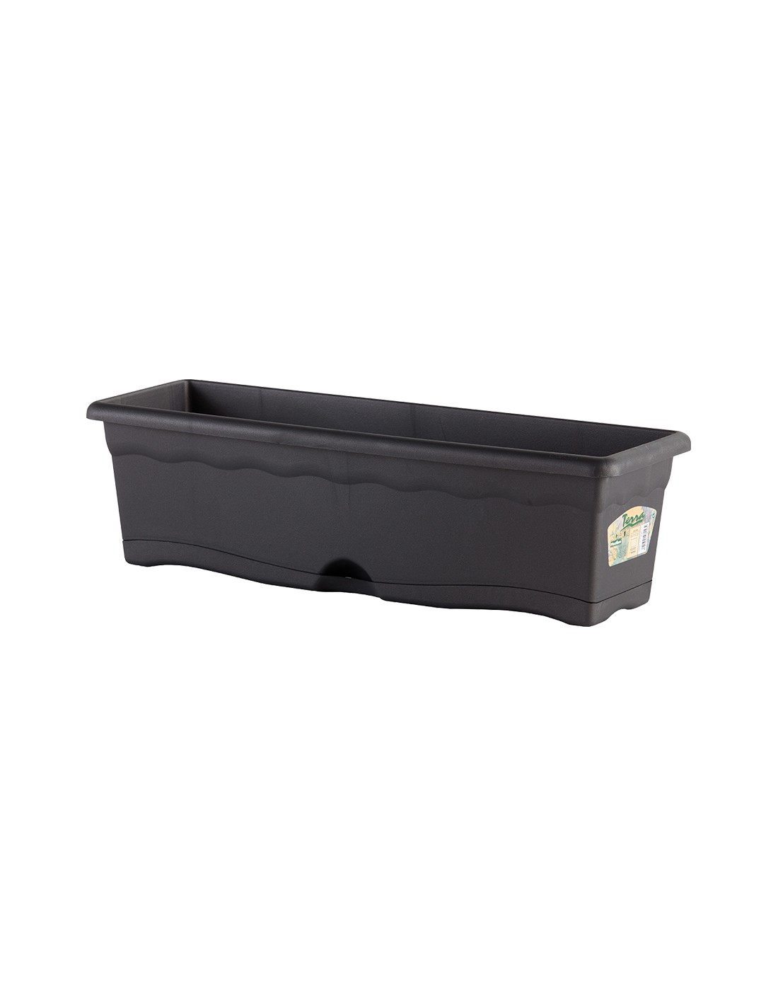 Jardinera con plato integrado color antracita 80x20cm. (ancho/fondo) pensada para uso en exteriores por su alta resistencia a los rayos solares, su robustez y su textura