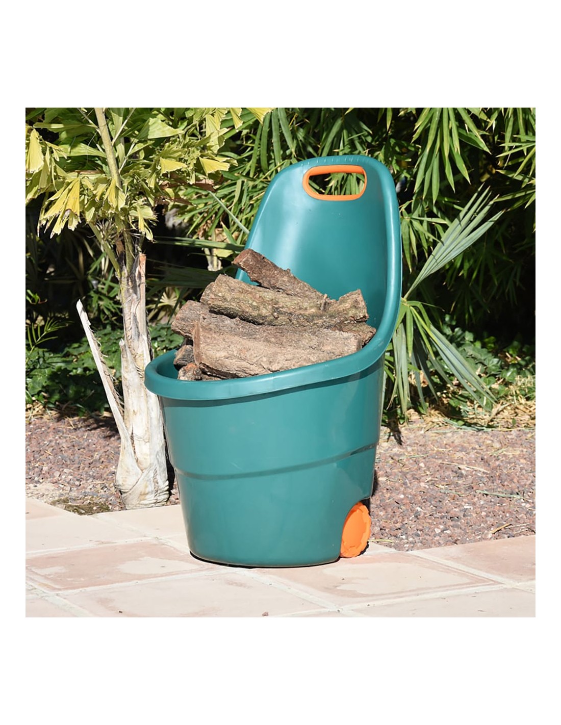 Carro de jardín 68 l 53 x 57 x 88,5 cm , con dos ruedas de plastico. material: polipropileno. valido para almacenar o transportar. color verde