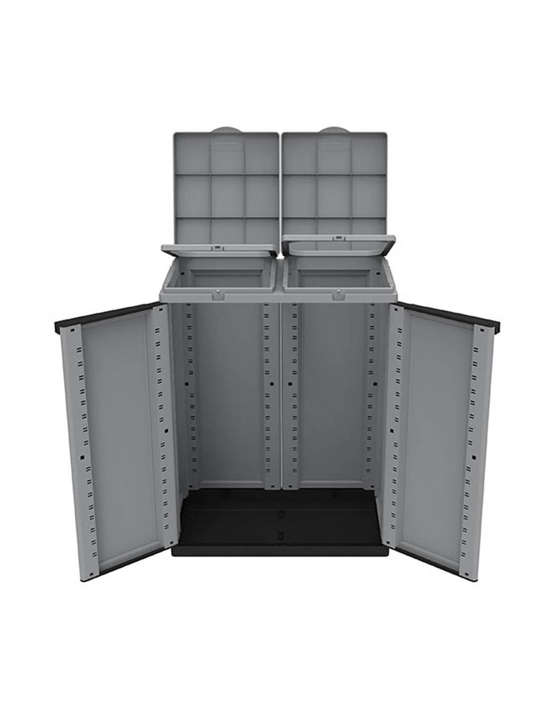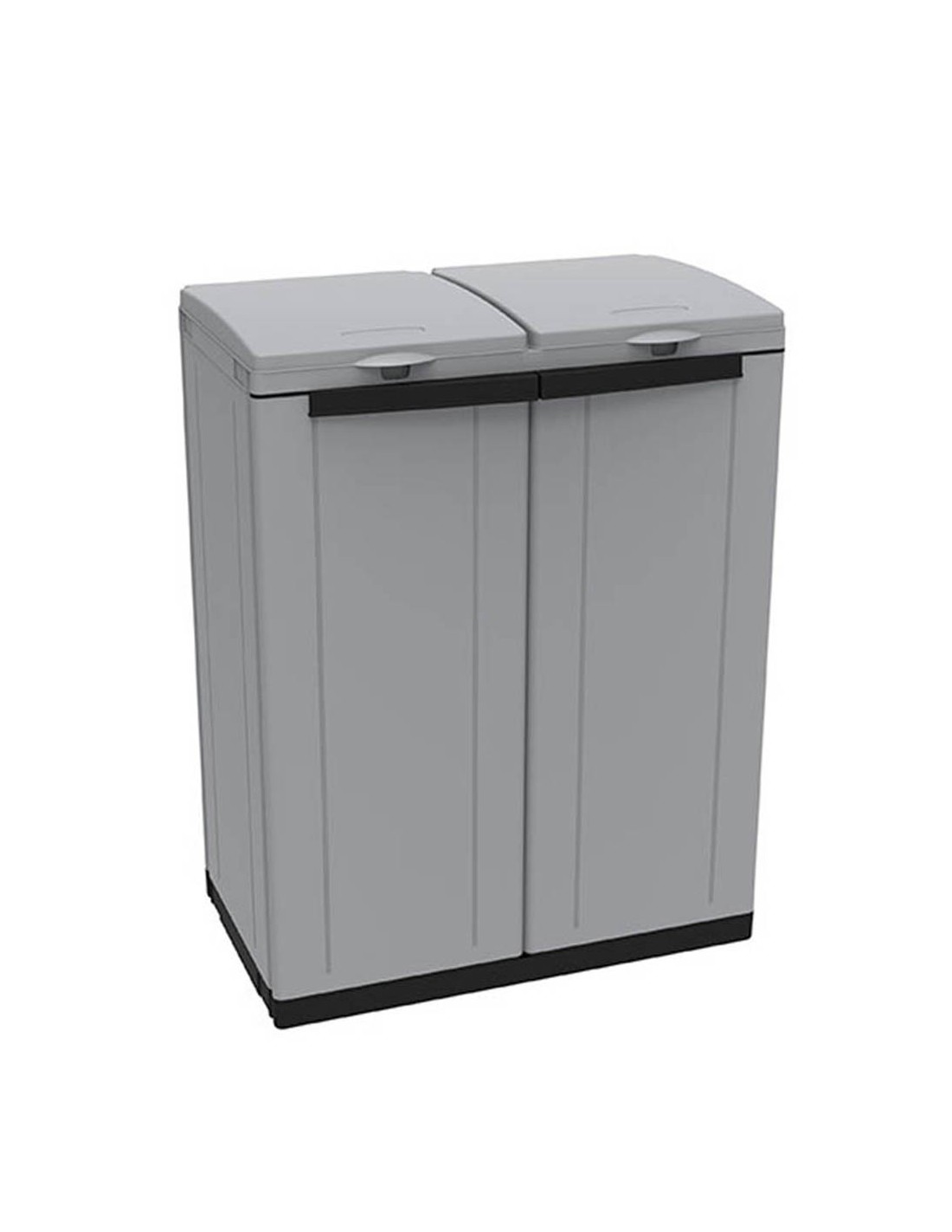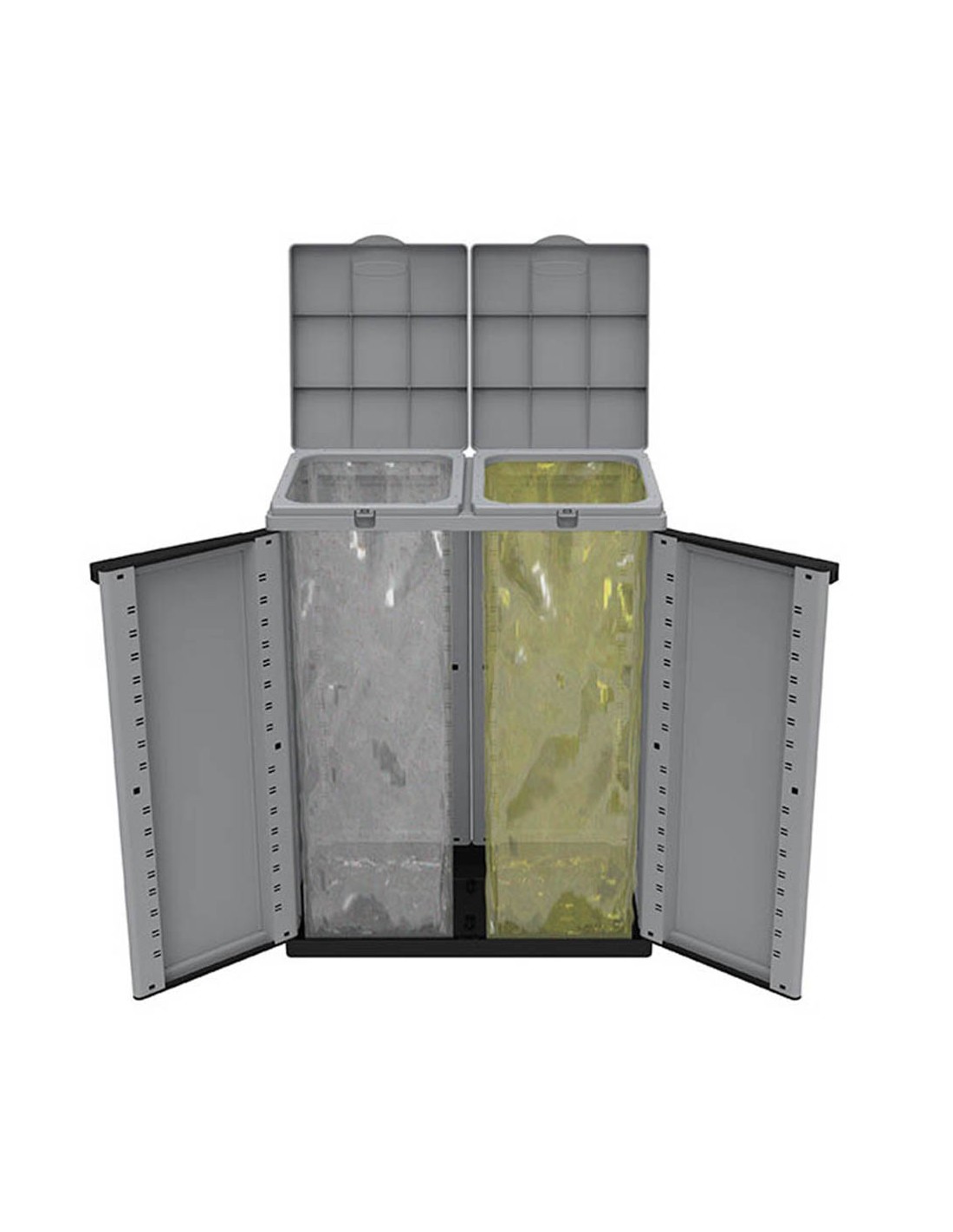 Armario ecoline 2 68x39x88,7cm. 2 puertas, color gris, apertura frontal y superior, anilla de sujeción para bolsas, apto para bolsas de hasta 110l, posibilidad de cierre con candado.