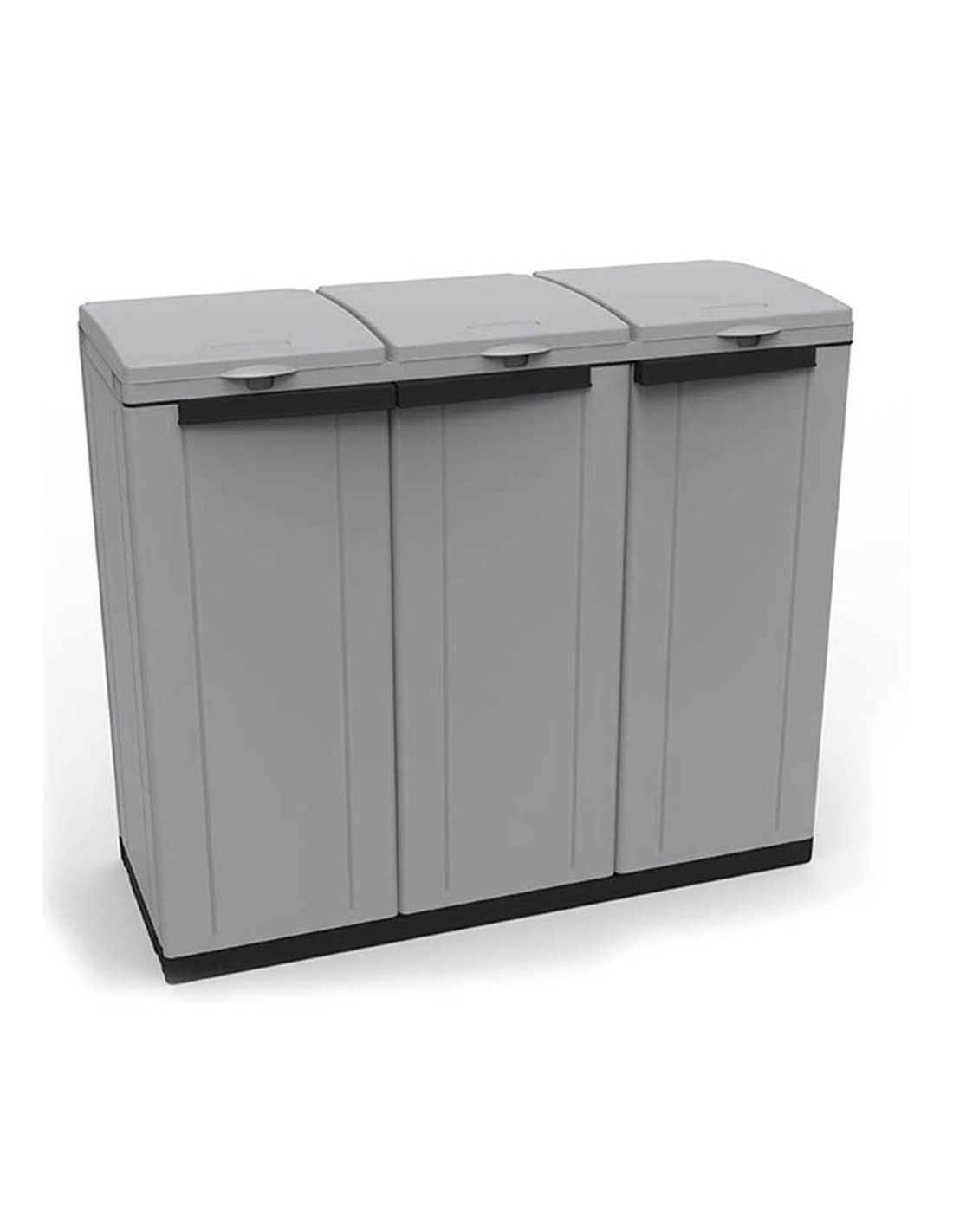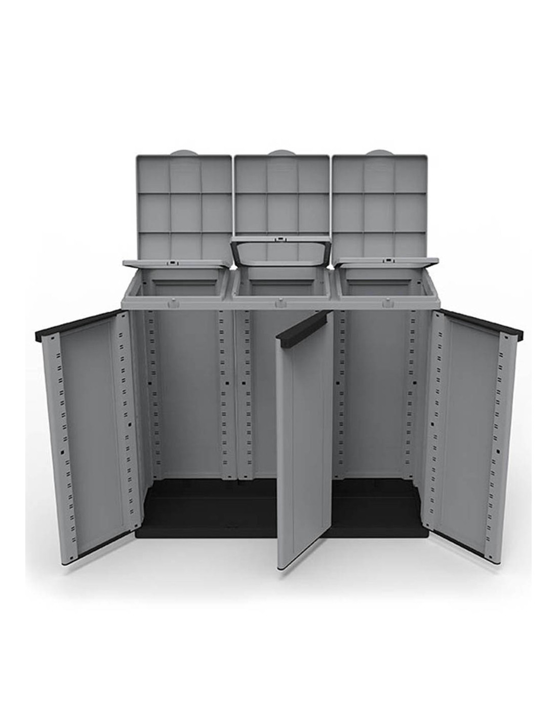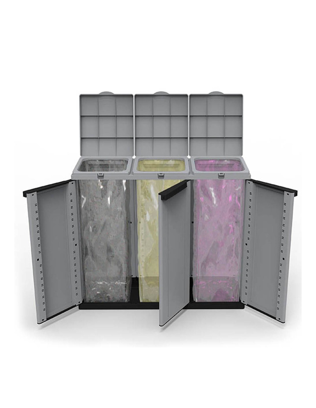Armario ecoline 3 102x39x88,7cm. 3 puertas, color gris, apertura frontal y superior, anilla sujeción para bolsas, apto para bolsas de hasta 110l, posibilidad de cierre con candado.