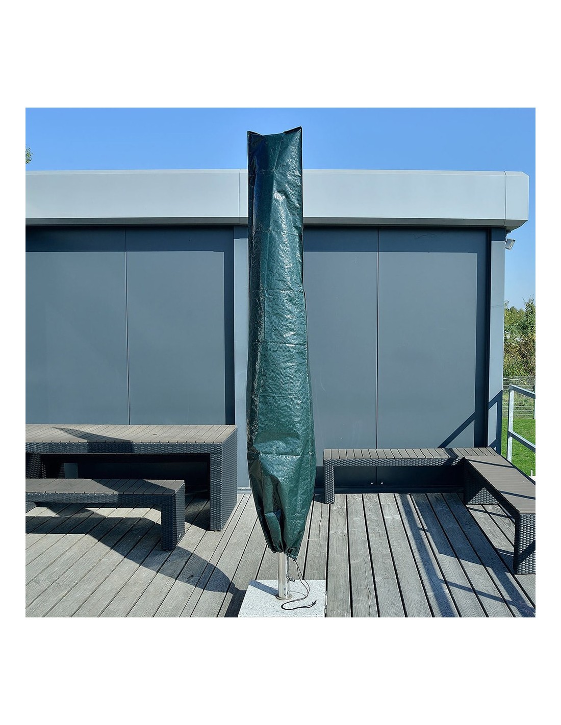 Funda de protección cubre sombrilla ø27-42x202cm (diámetro/alto). material polietileno 100g/m impermeable. cuerda de sujecion. cremallera de cierre