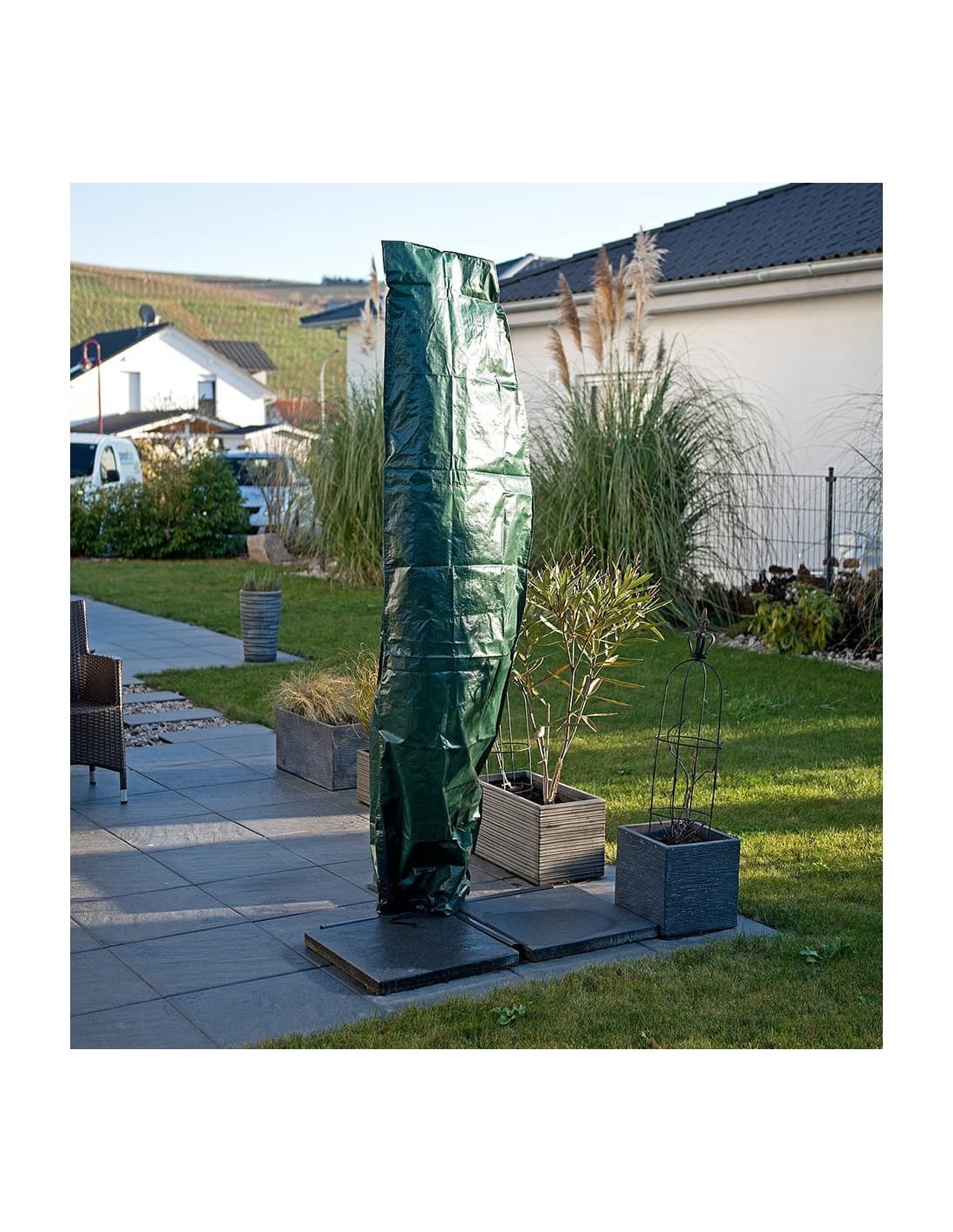 Funda de protección cubre sombrilla ø25-70x302cm (diámetro/alto). material polietileno 100g/m impermeable. cuerda de sujecion. cremallera de cierre