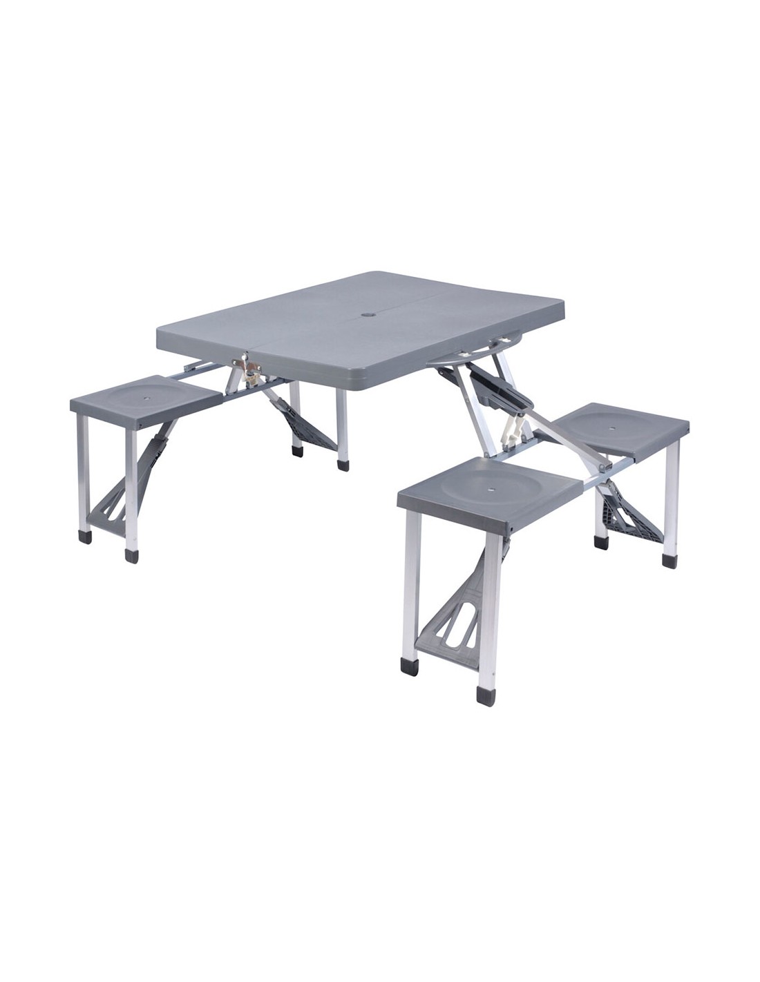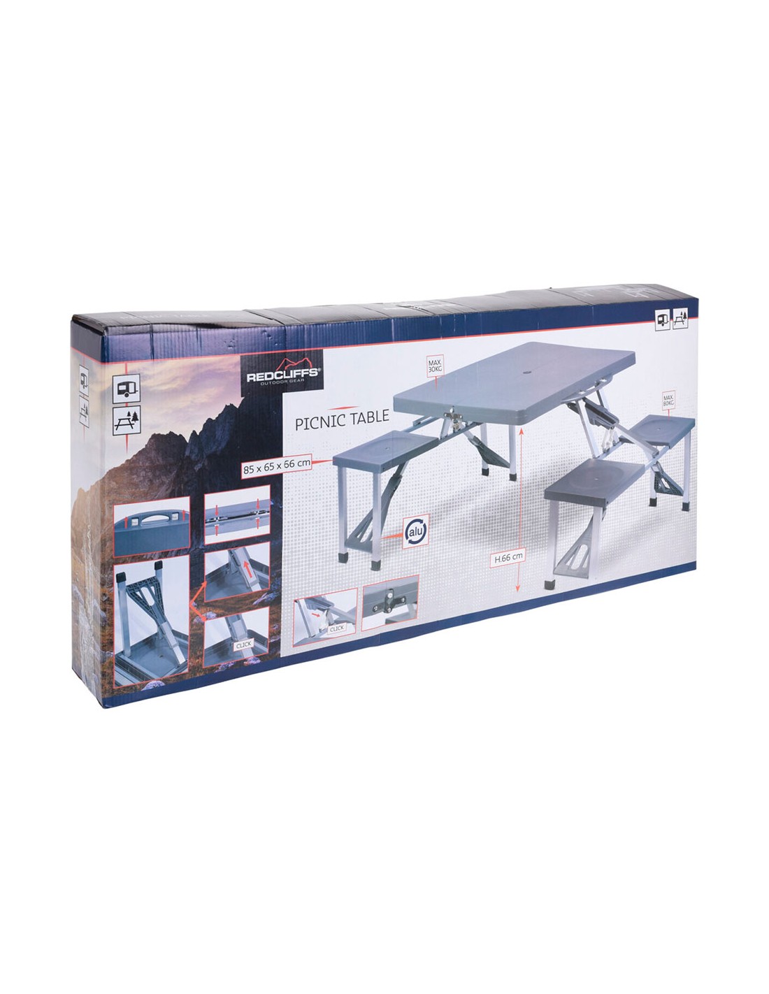Conjunto plegable para picnic medida de la mesa montada: 85,5x65x66cm (ancho/fondo/alto). medida del conjunto plegado: 85,5x39x11cm (ancho/fondo/alto). material: aluminio/plastico. color gris. redcliffs