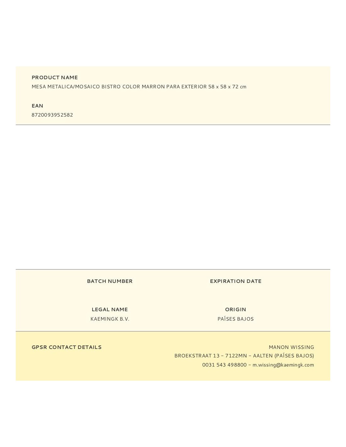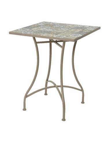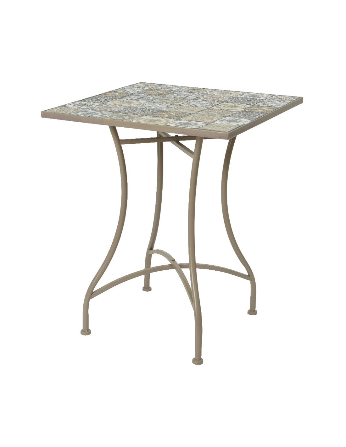 Mesa metalica/mosaico color: marron 58x58x72cm (diámetro/altura) modelo bistro. fabricada con hierro y mosaico de piedra. para exterior