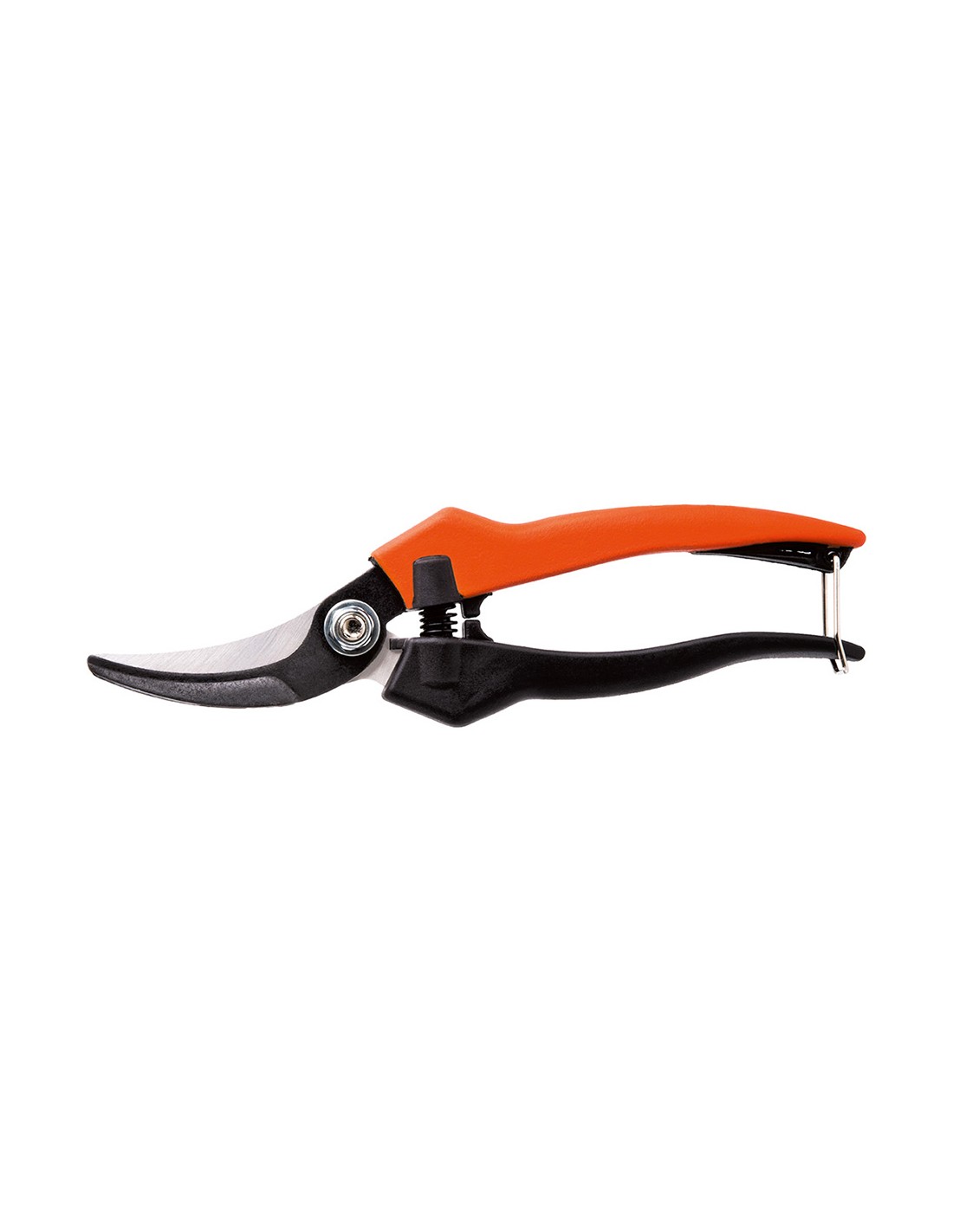 Tijera de vendimia curva 18. stocker. compacta y ligera, perfecta para la vendimia y la recolección de frutos cítricos. hoja de acero forjado en caliente curvada. mango de pvc. empuñadura ergonómica. longitud: 18cm peso: 90g