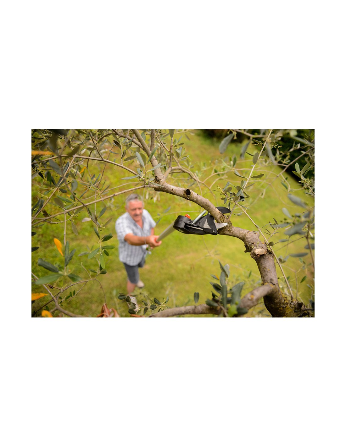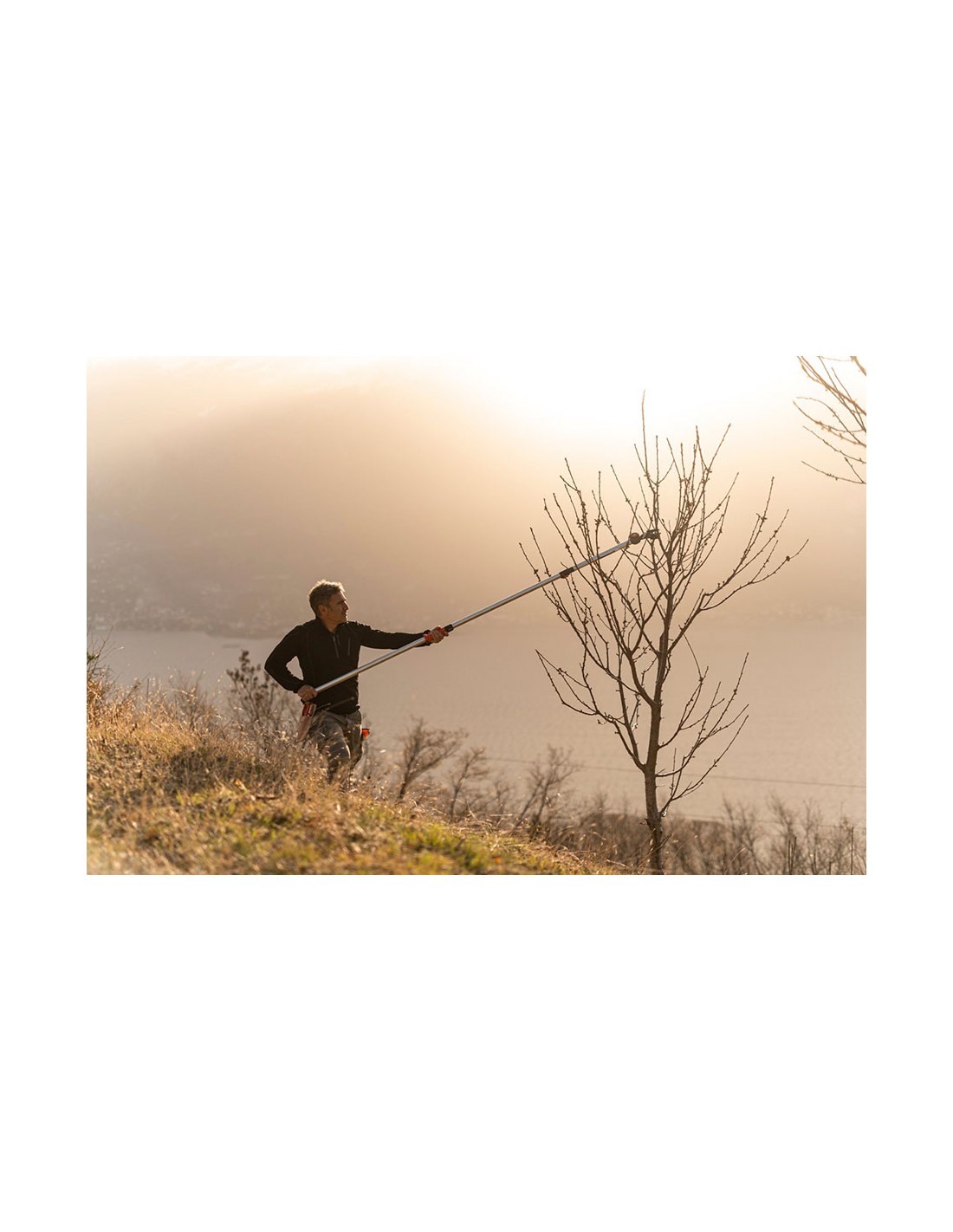 Tijera de mango largo telescópica 230 - 400cm. stocker. ¡adiós fatiga! la tijera con mango telescópico es perfecta para podar árboles de grandes dimensiones como el olivo. permite podar también las ramas en 5-6 metros de altura con diámetro de 35mm. gracias al mango extensible, la poda puede ser hecha en toda seguridad desde el suelo, sin escalera. la cabeza de corte ajustable a 180° y que se puede bloquear en cualquier punto ofrece la máxima flexibilidad. cabeza de corte ajustable a 180° mango fácilmente prolongable. cierre seguro de la hoja. longitud: 230-400cm. peso: 1.650g