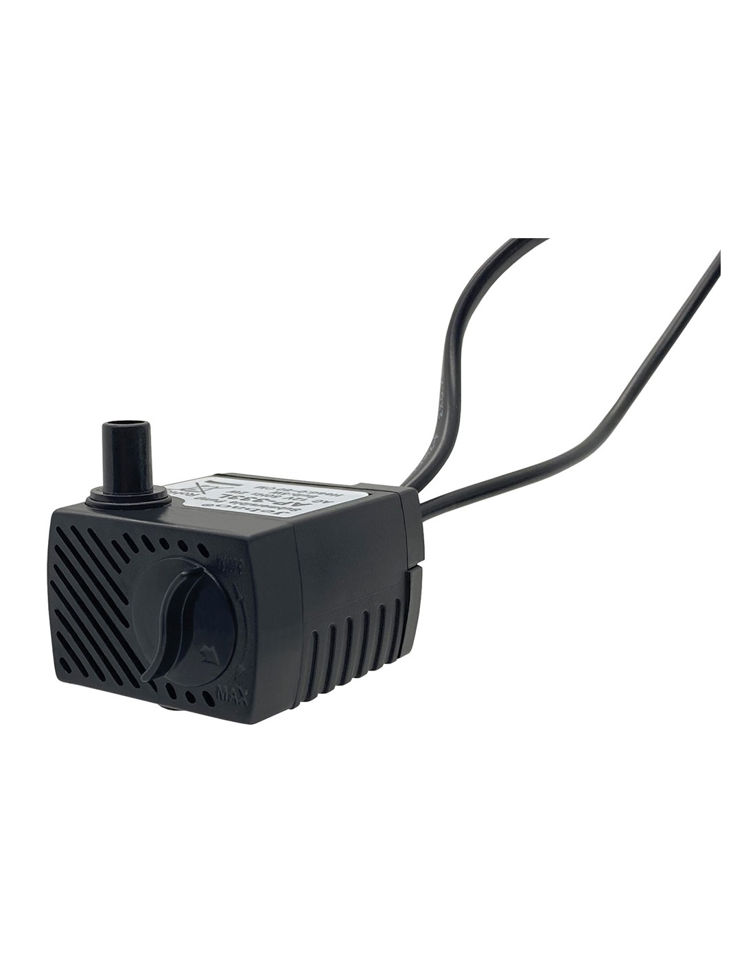 Bomba sumergible biotop para estanques pequeños y fuentes. medidas: 49x44x32mm. potencia 2,5w/h. altura máxima jet 0,65m. caudal máximo 250 l/h. conexión 7mm con adaptador a 10mm. capacidad de estanque 1000 l. esta cantidad se reducirá a la mitad si contiene peces. longitud del cable 1,5m tension: 230v