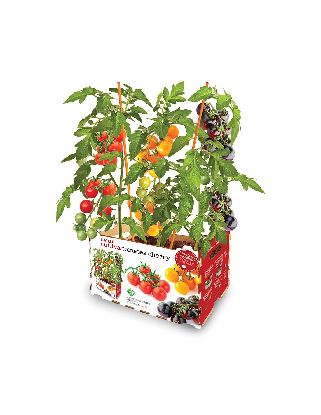 Caja con tomates de colores batlle. contiene todo lo necesario para cultivar 3 variedades de tomates cherry: rojos, amarillos y negros. dimensiones: 30x19,5x16,2cm (ancho/fondo/alto). peso: 2,85kg.
