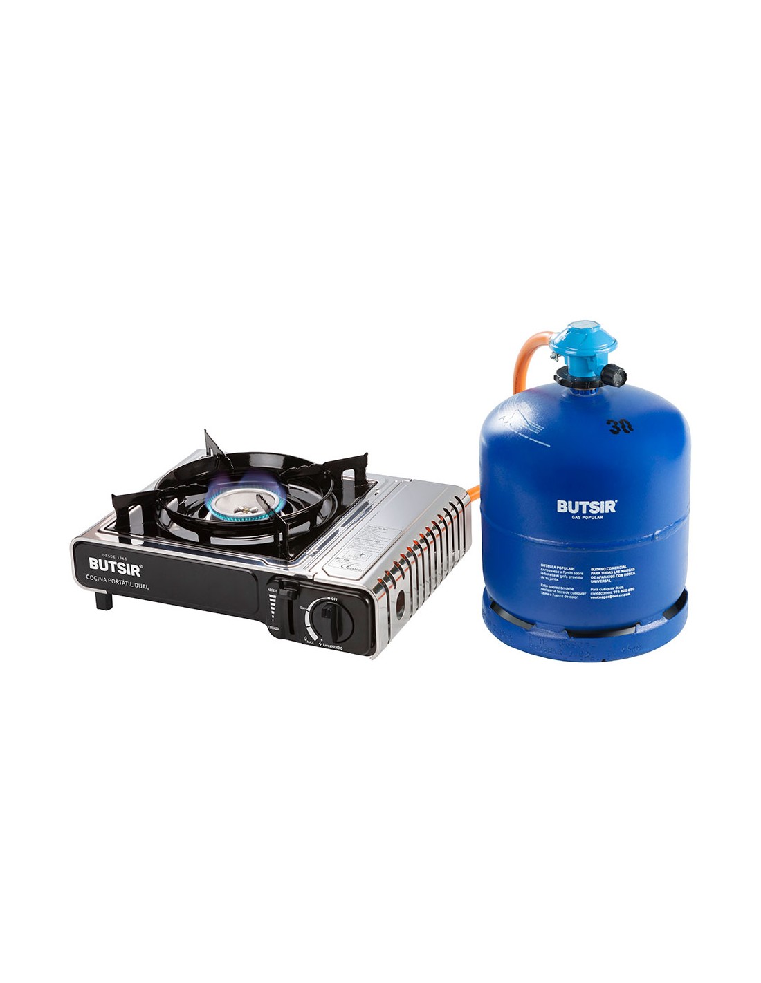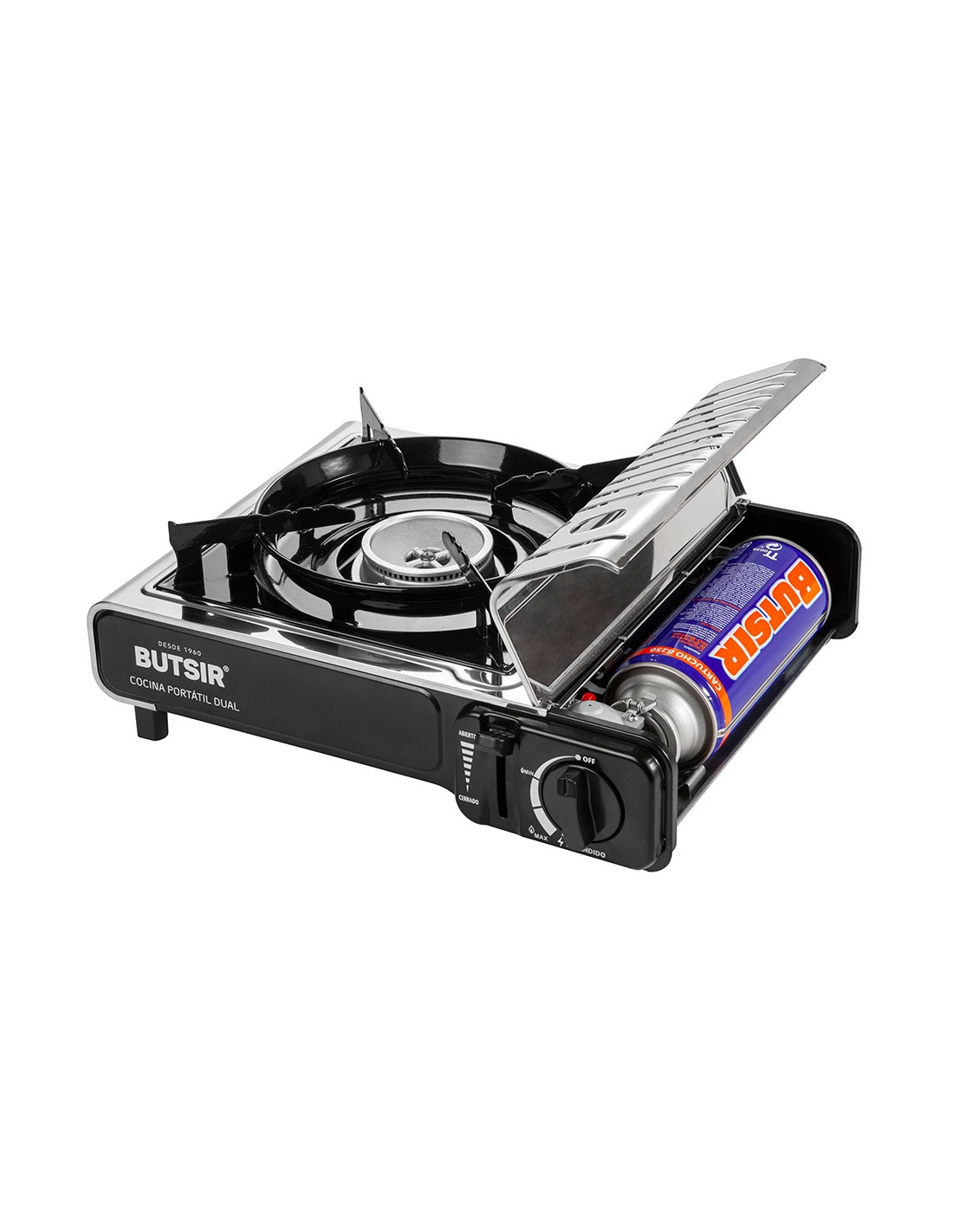 Cocina portátil de 1 fuego ms-2000 dual butsir. funciona con cartuchos y botellas butsir (azules y naranjas). certificada según la nueva normativa europea en17476/2021. más segura y robusta. encendido piezoeléctrico. nuevo maletín de transporte reforzado. con armazón de acero inoxidable y parrilla esmaltada. dimensiones: 34x28x12cm (ancho/fondo/alto). atención: no instalar cartuchos expuestos al calor. su alta presión activará el mecanismo de seguridad que bloquea la cocina. para más instrucciones al respecto, consultar el manual de instrucciones y el vídeo del artículo.