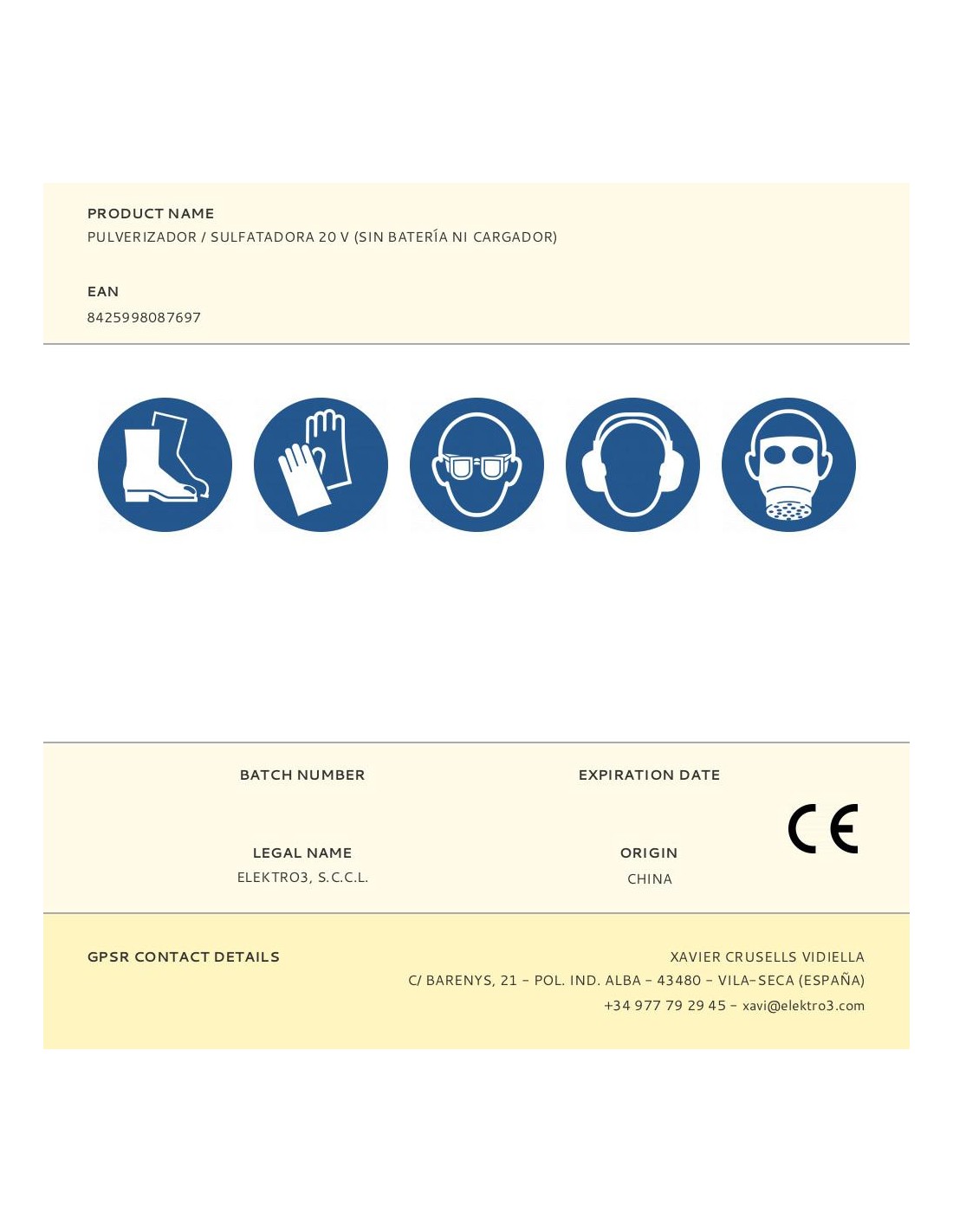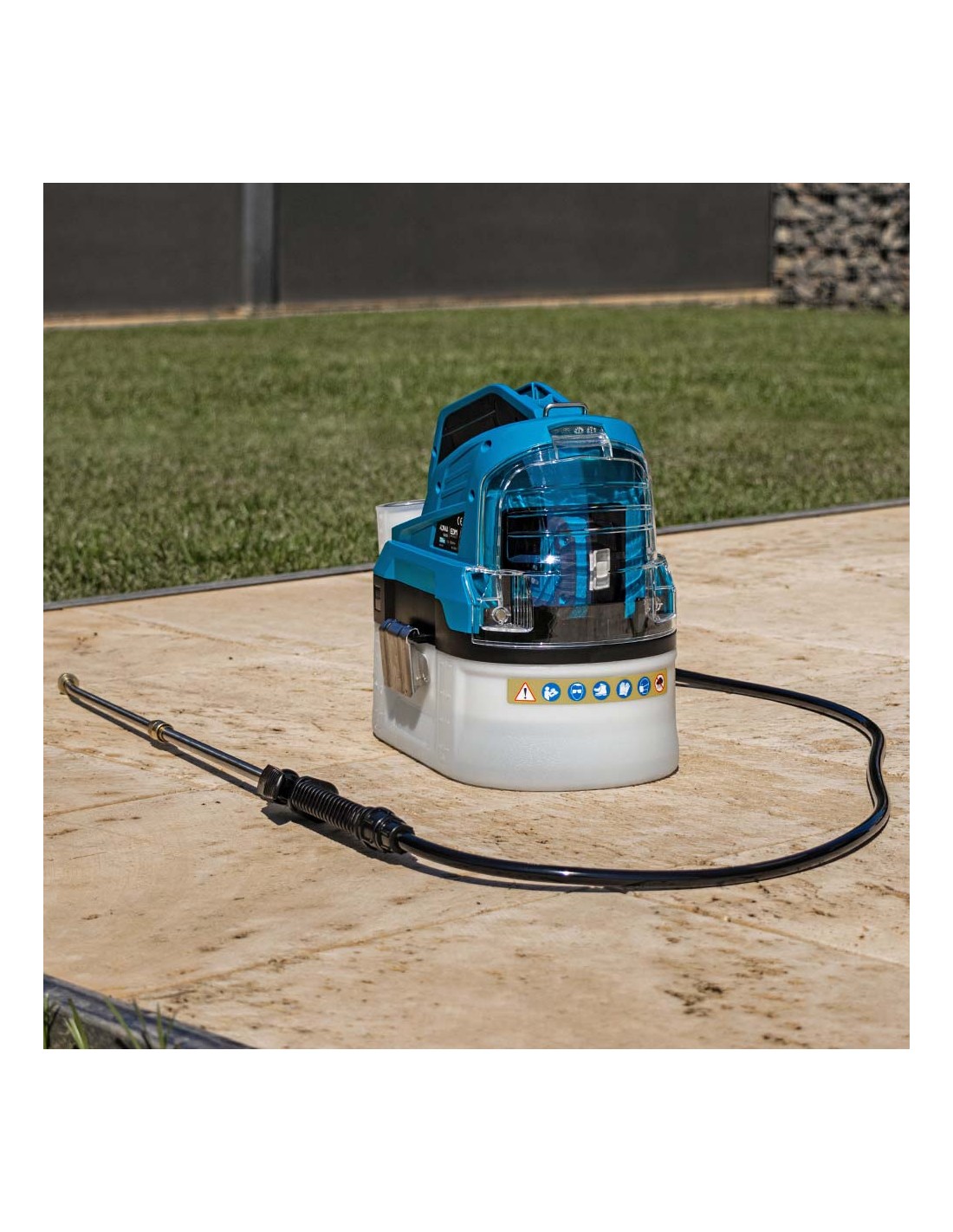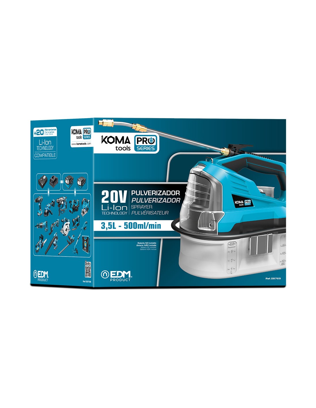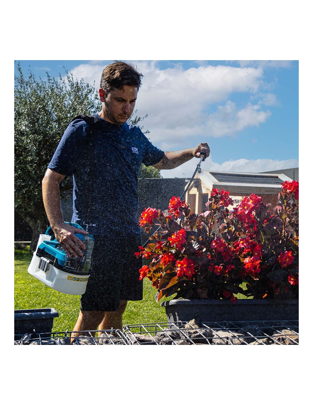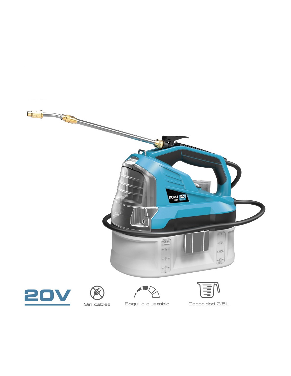 Pulverizador / sulfatadora 20 v (sin batería ni cargador). permite distribuir uniformemente los productos fitosanitarios, fertilizantes y herbicidas. no es necesario generar la presión manualmente. capacidad depósito con medidor 3,5l - 500ml/min. alcance en posición pulverizador hasta 1,5m y en posición chorro hasta 4 m. incluye: lanza extensible de acero inoxidable 50 cm. manguera 120 cm. bandolera. dimensiones: 33 x 33 cm