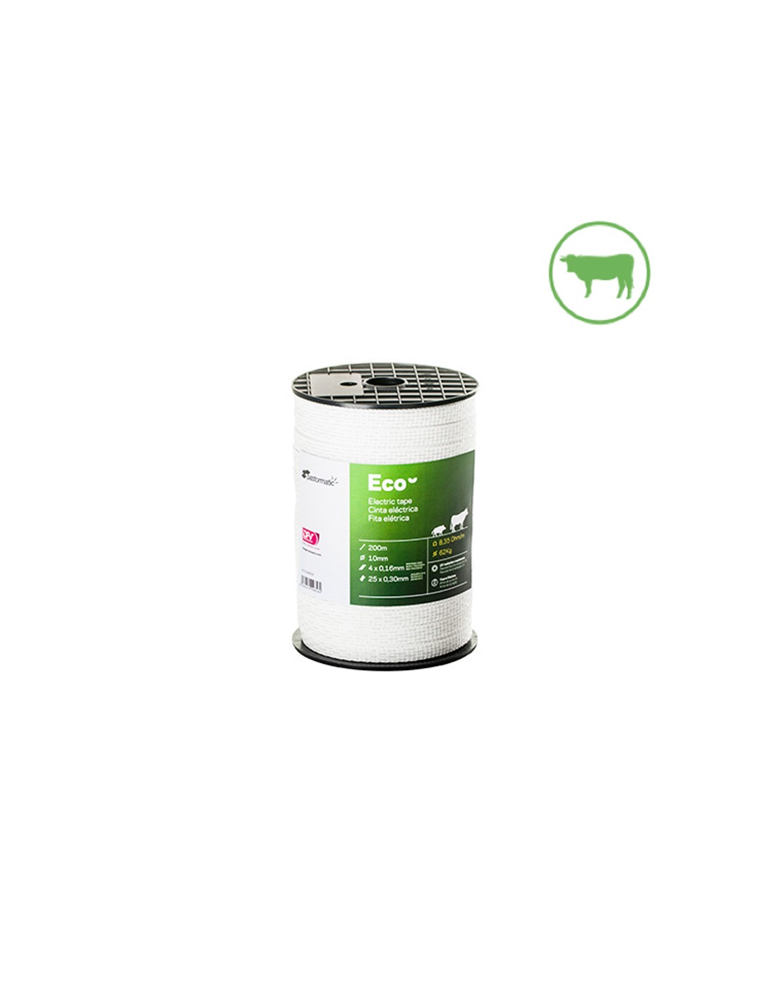 Cinta conductora 10mm pastormatic. 4 cords conductores: (0, 16mm acero inox.) 25 cords: (0,30mm) . longitud 200m. resistencia eléctrica (ohm) 8,35. carga rotura: 62kg.