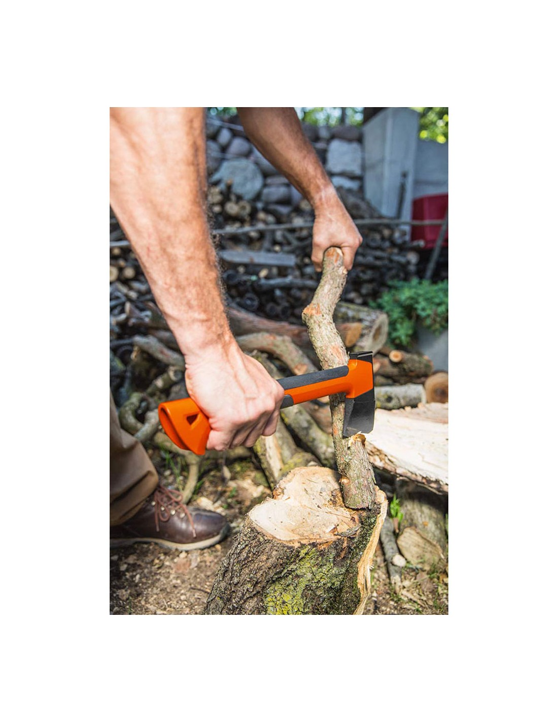 Hacha de corte 700g. la cabeza de 500g está hecha de acero al carbono de muy alta calidad con revestimiento antifricción. el mango es ergonómico, gracias a la forma y a los insertos antideslizantes, y ligero: su estructura está vacía por dentro para reducir las vibraciones causadas por el impacto con la madera. la parte posterior de la cabeza de corte también se puede utilizar como práctico martillo. está equipada con presilla, para ser transportada cómodamente y en total seguiridad. - peso: 700g - peso de la cabeza: 500g - longitud: 35cm. stocker