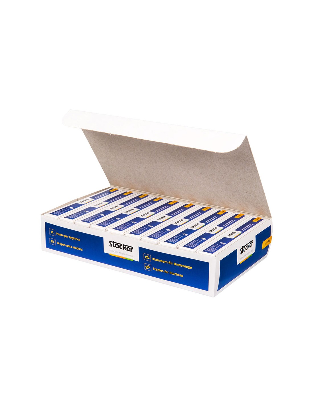 Puntas para atadora. grapas para atadora stocktap art. 79090 cada confección contiene 4800 grapas x 10 cajitas, por un total de 48.000 puntos.. stocker