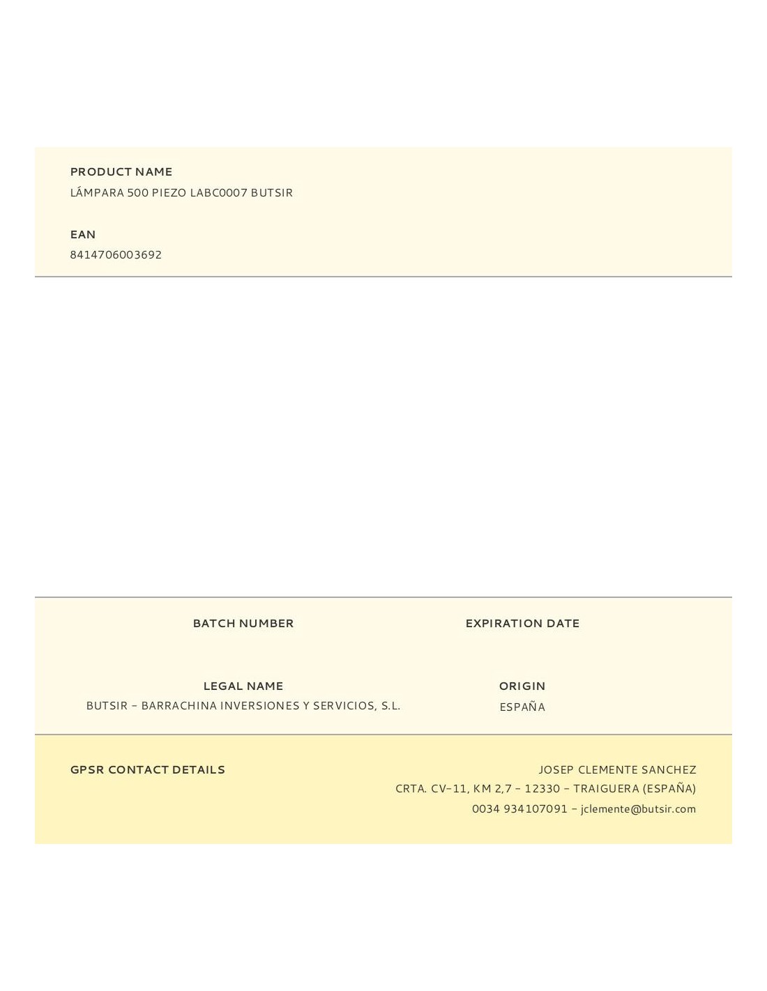 Lámpara 500 piezo labc0007 butsir. para bombonas azules. portátil, con asa. encendido piezoeléctrico. medidas: 28x18x19cm. peso: 1,15kg