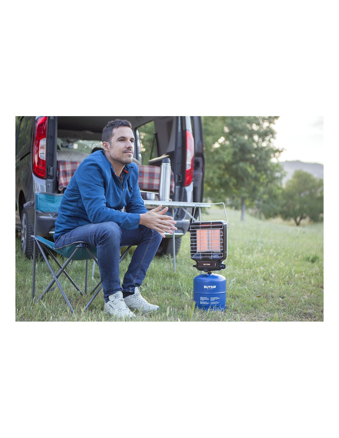 Estufa de infrarrojos portátil barrachina ebbc0022 butsir. para bombonas azules. ligera, compacta y con asa. homologada para uso doméstico tanto interior como exterior. válvula de seguridad y analizador de atmósfera. encendido piezoeléctrico. potencia máxima: 3000w. consumo máximo: 200g/h. medidas: 15x25x35cm. peso: 3,25kg. funda y bombona no incluídas.