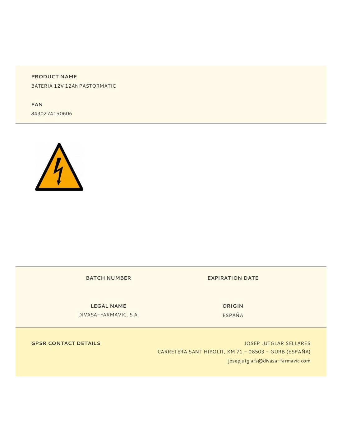 Bateria 12v 12ah pastormatic. bateria tipo acumulador para pastores a bateria de poca potencia, ejemplo modelo 250. se puede cargar externamente con cualquier cargador generico del mercado de no más de 1'5ah/hora. dimensiones: 15x9x10cm