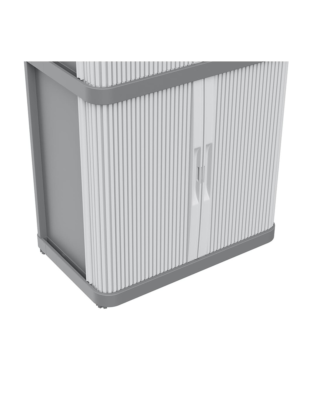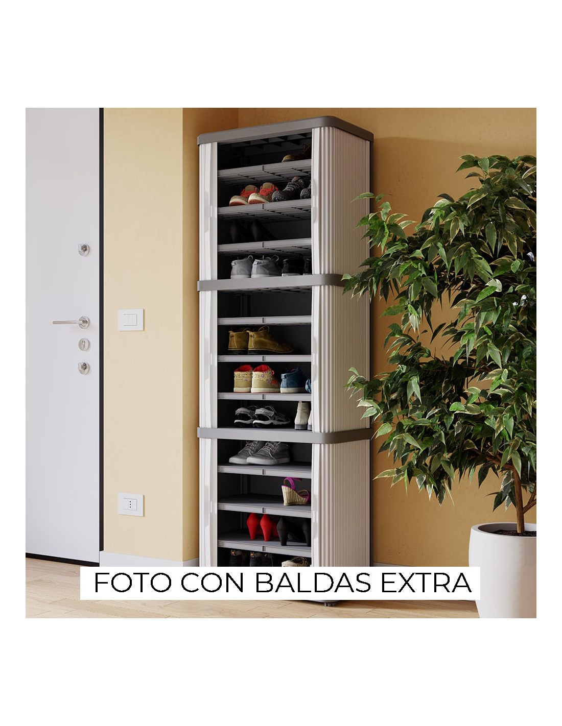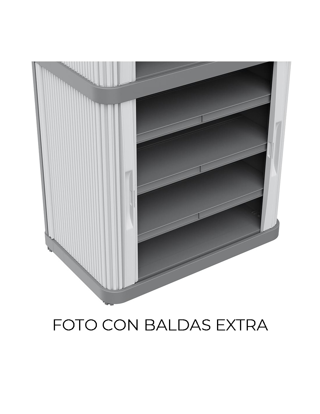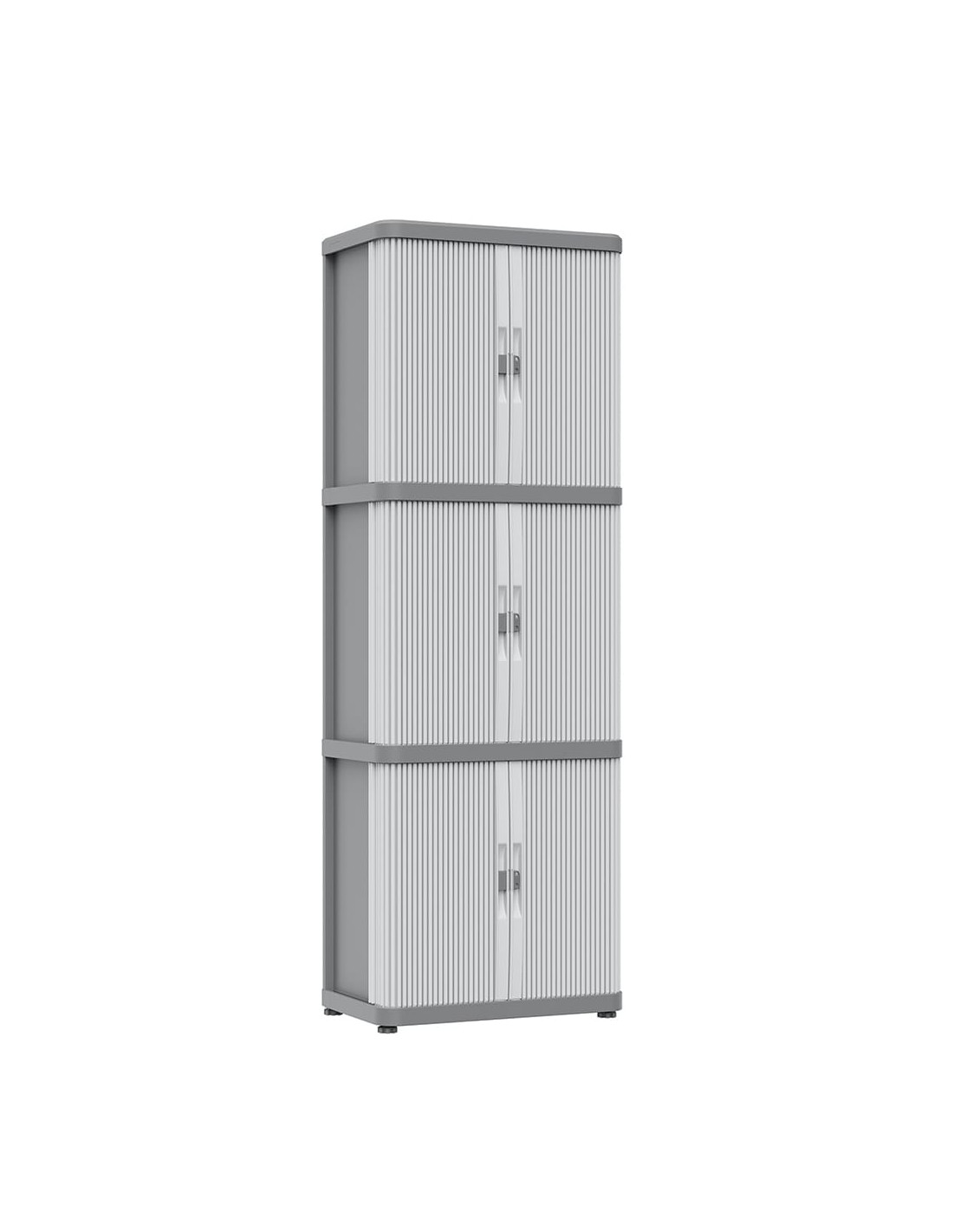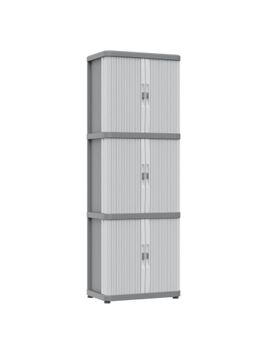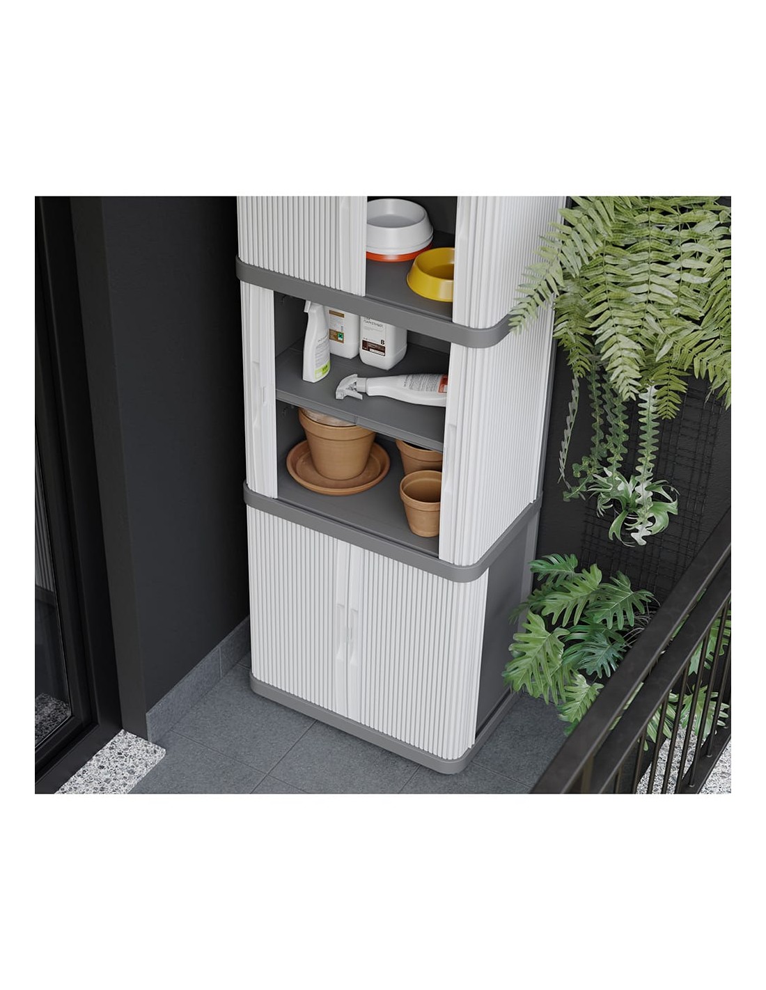 Armario rolling space modular 3. apto para interior y exterior. fabricado con material reciclado 90%. ip43. protección contra rayos uv. pies regulables en altura. resistencia de las estanterias entre 5 y 10kg. 5 baldas. interior modular. posibilidad de cierre por candado. puertas correderas.170x59x36cm