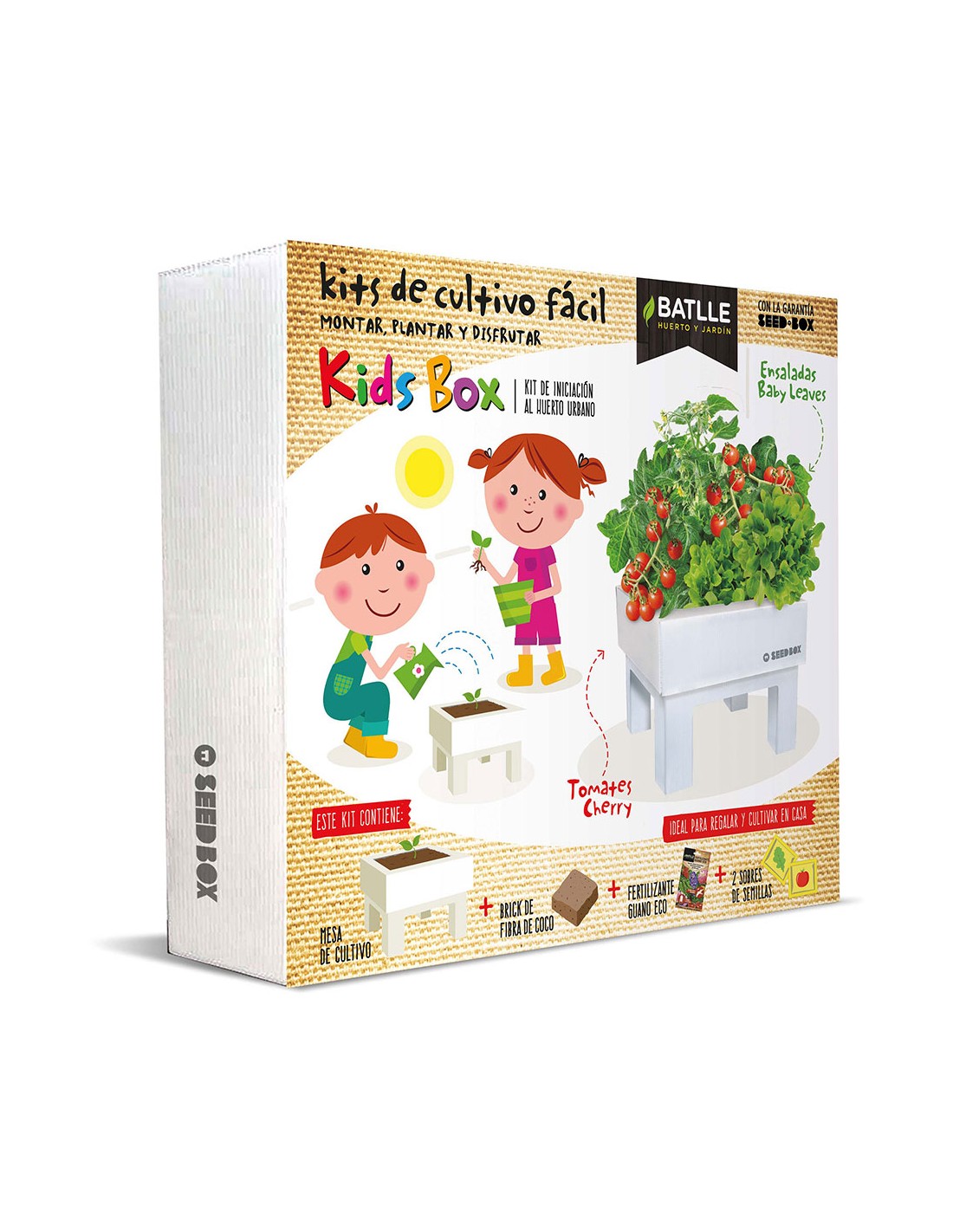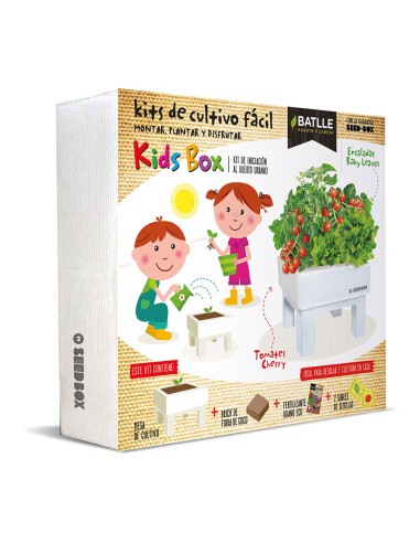 Seed box kids 160116unid batlle. el seed box kids contiene todo lo necesario para que los niños descubran la divertida actividad de iniciarse en el cuidado de cultivo de un huerto en casa. toda la familia podrá participar sembrando, regando, recogiendo los tomates y hojas de baby leaves para preparar deliciosas ensaladas. así de fácil.