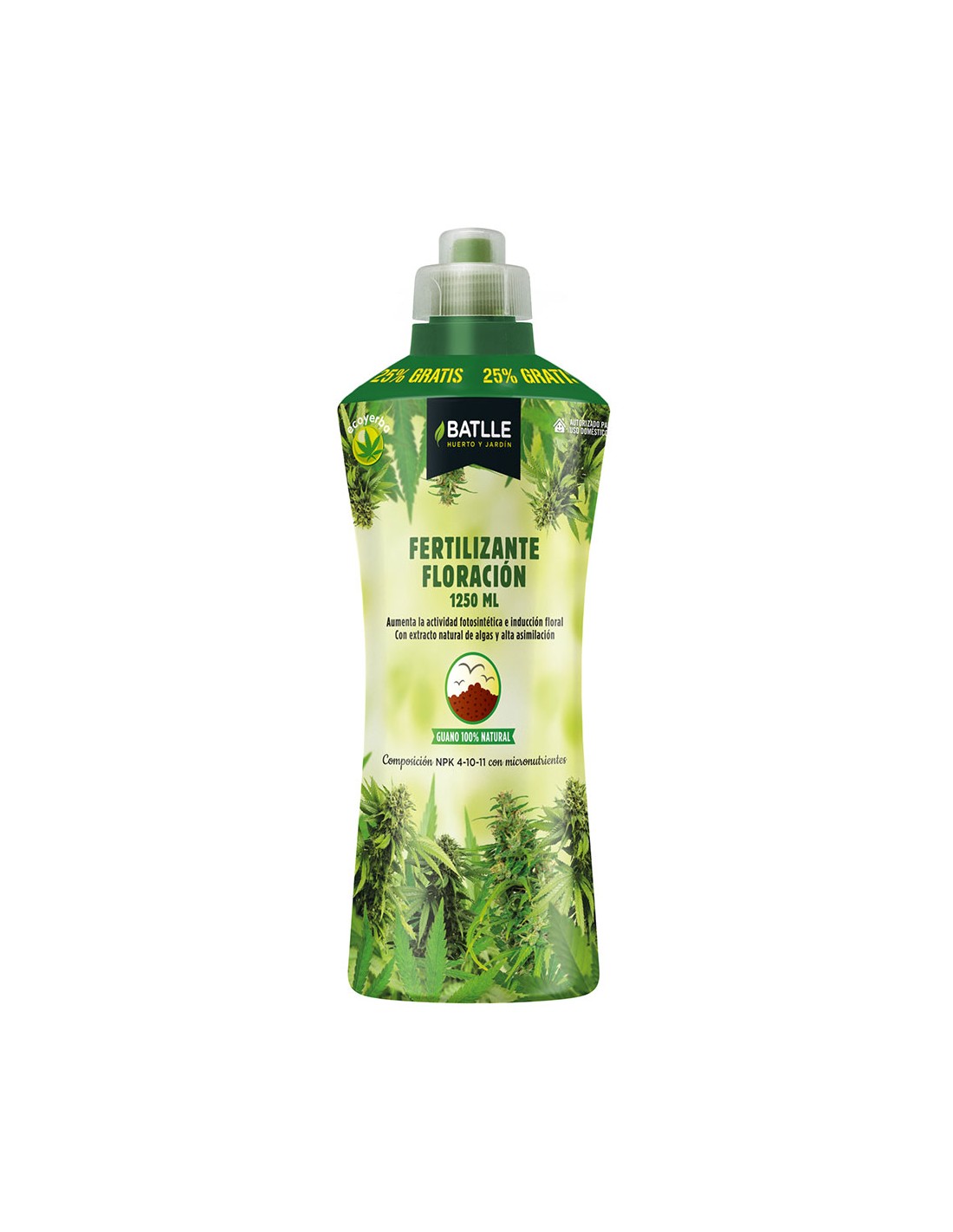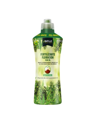 Fertilizante ecoyerba para floracion 1250ml 710563unid batlle. elfertilizante floración es un complejo nutritivo de alta asimilación en base a vitamina b1, extracto natural de algas y guano 100% natural, pensado para promover una rápida y cuantiosa inducción floral, ya que estimula el proceso fotosintético y de captación de energía, consiguiendo frutos más grandes, con más aroma y más sabrosos en un menor espacio de tiempo. su formulación en base orgánica está también pensada para mejorar la asimilación y las defensas naturales.