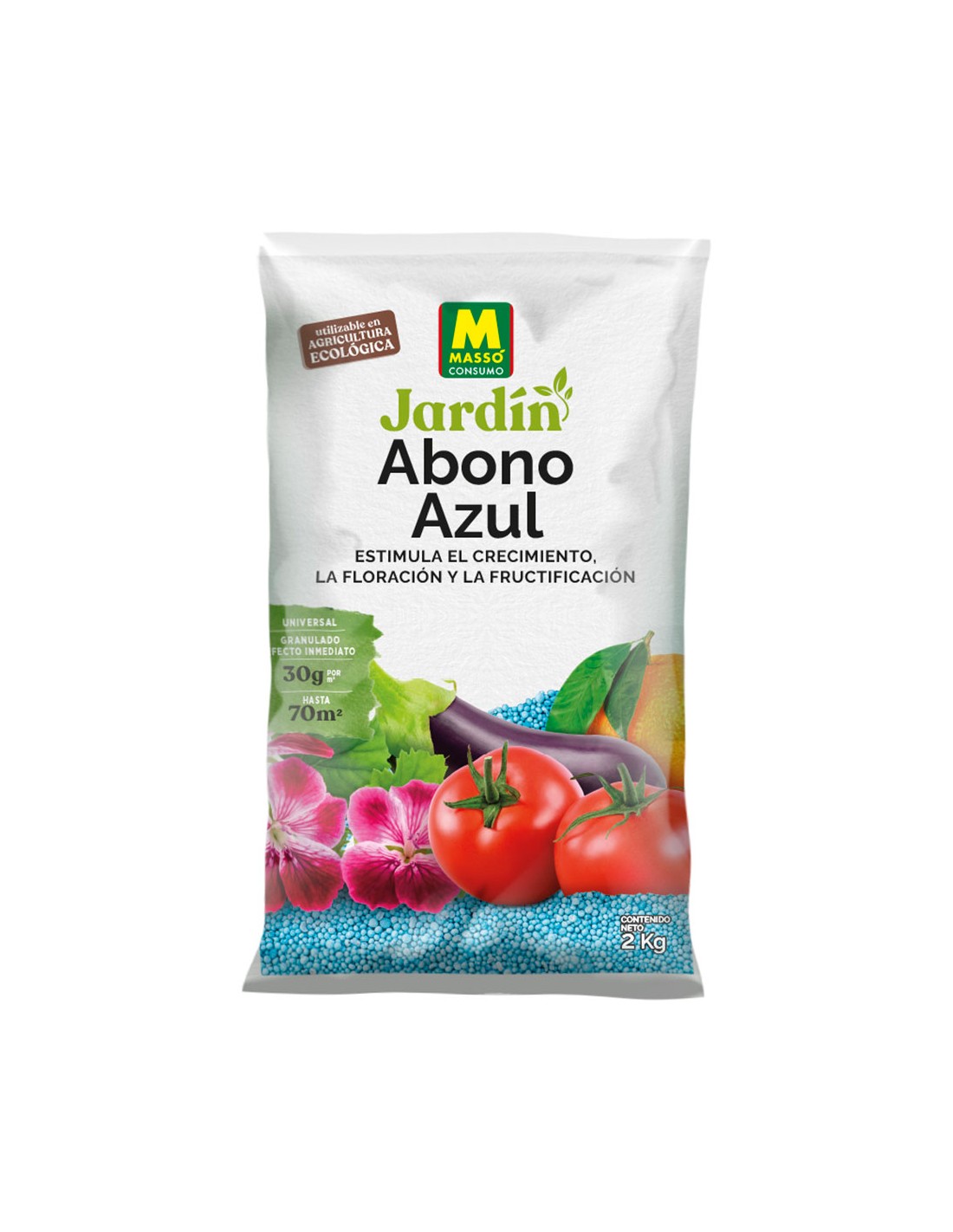 Abono azul 2kg en bolsa. fertilizante universal para todo tipo de plantas. estimula el crecimiento equilibrado, el cuajo y la floración. favorece el desarrollo de las raíces, bulbos y tubérculos. granulado: efecto inmediato.