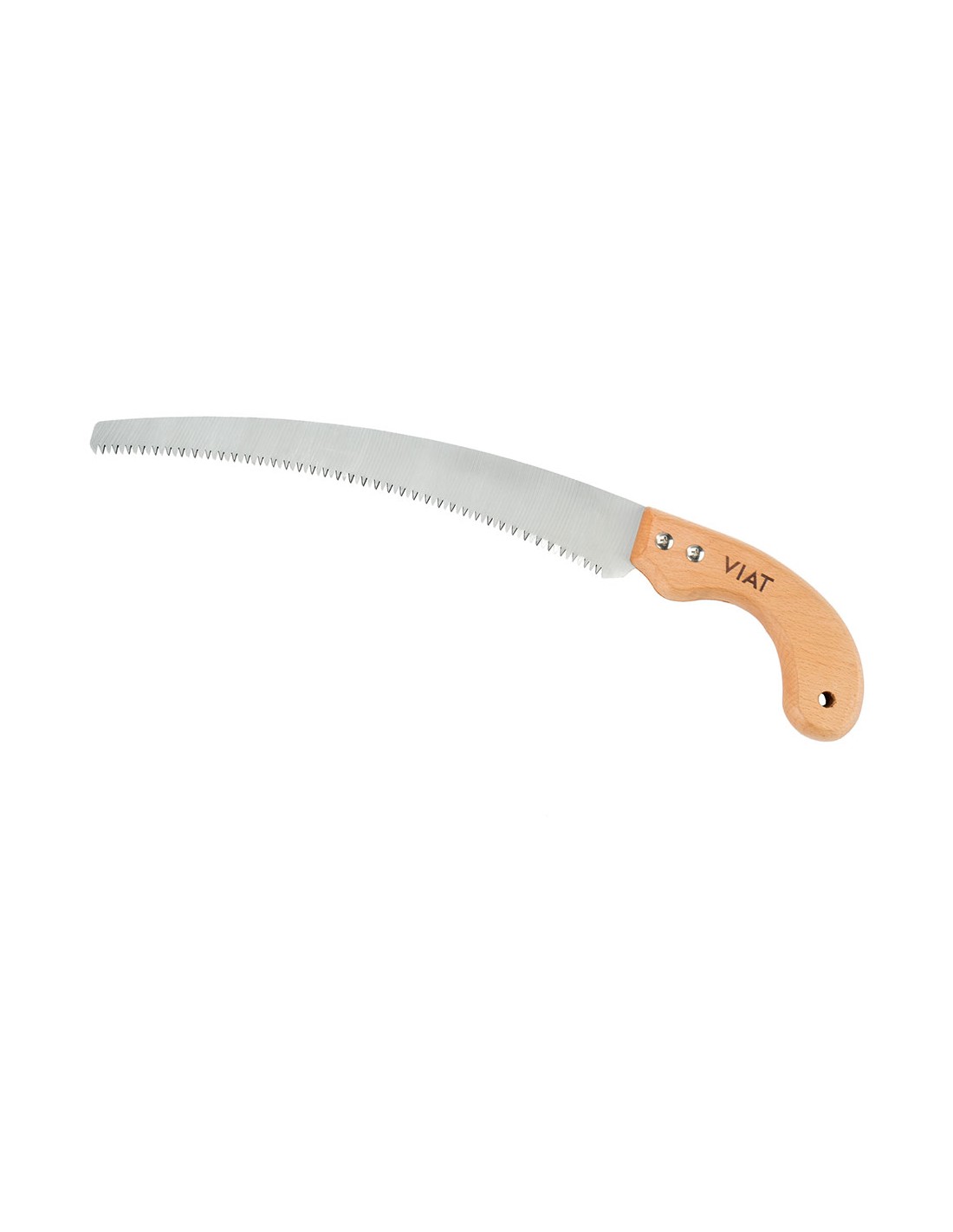 Serrucho de poda con dentado japonés medidas: 110x510x45mm viat58713b viat serrucho de poda con dentado japonés, afilado por las tres caras del diente para un corte rápido y fácil. mango de madera barnizada con protector de la mano, acabado redondeado que permite el juego de la mano durante el uso.