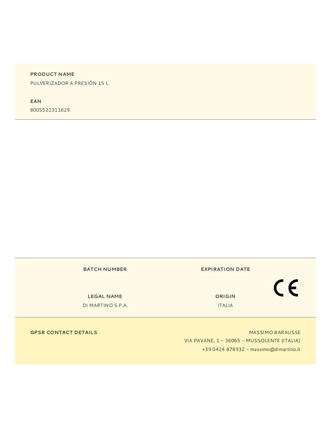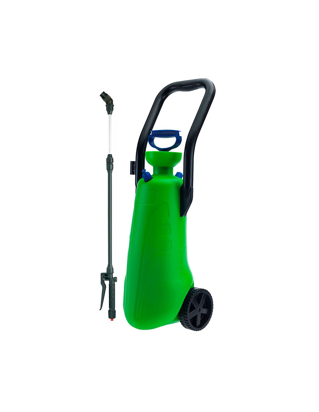 Pulverizador a presión 15 l. fácil de transportar, cómodo mango ergonómico, lanza telescópica, boquilla regulable con curva, válvula de seguridad, manguera resistente al calor y las heladas, mango porta lanza vertical, capacidad bruta 15 l, capacidad neta 12 l.