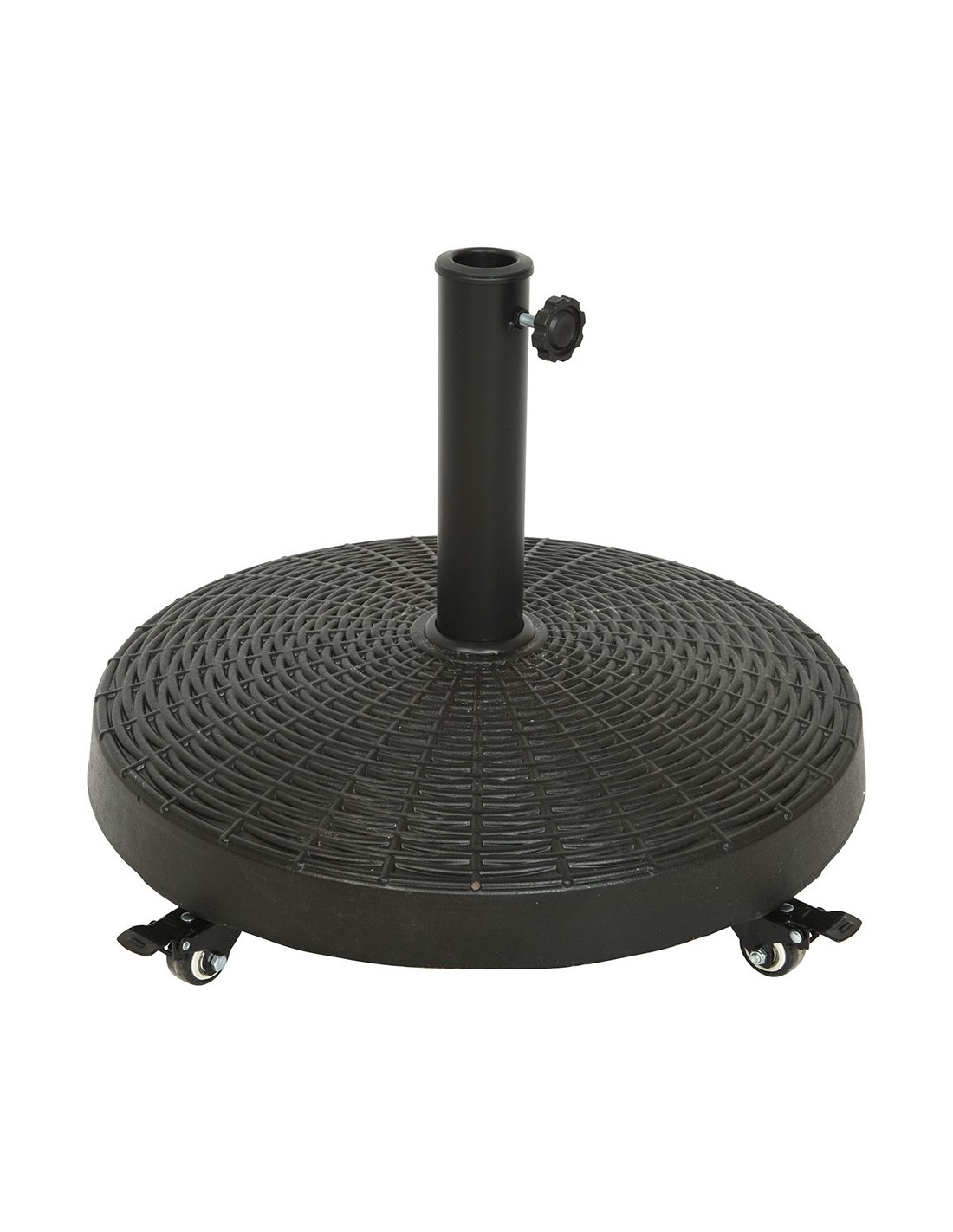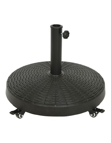 Base para parasol con ruedas color negro diámetro 52cm 841097 con base de polietileno y tubo de acero, perfecto para toda la gama de parasoles y muy útil y fácil de transportar gracias a sus cuatro ruedas.