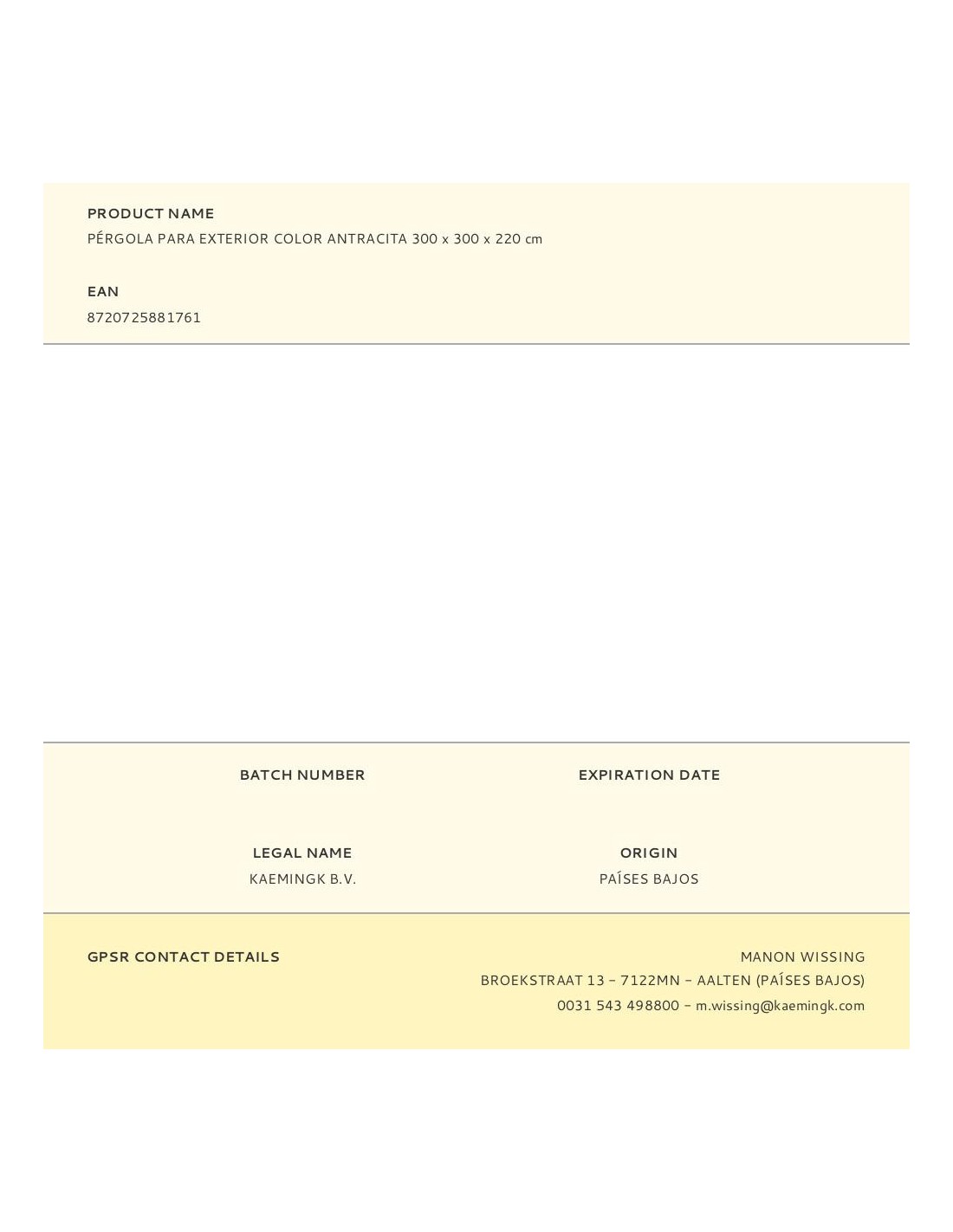 Pérgola para exterior 300x300x220cm gris antracita 891705 de aluminio de alta calidad con medidas del tubo 28x70x1mm y tubo de hierro 60x60x1mm. con acabado mate y lona con protección uv 400 de polyester.