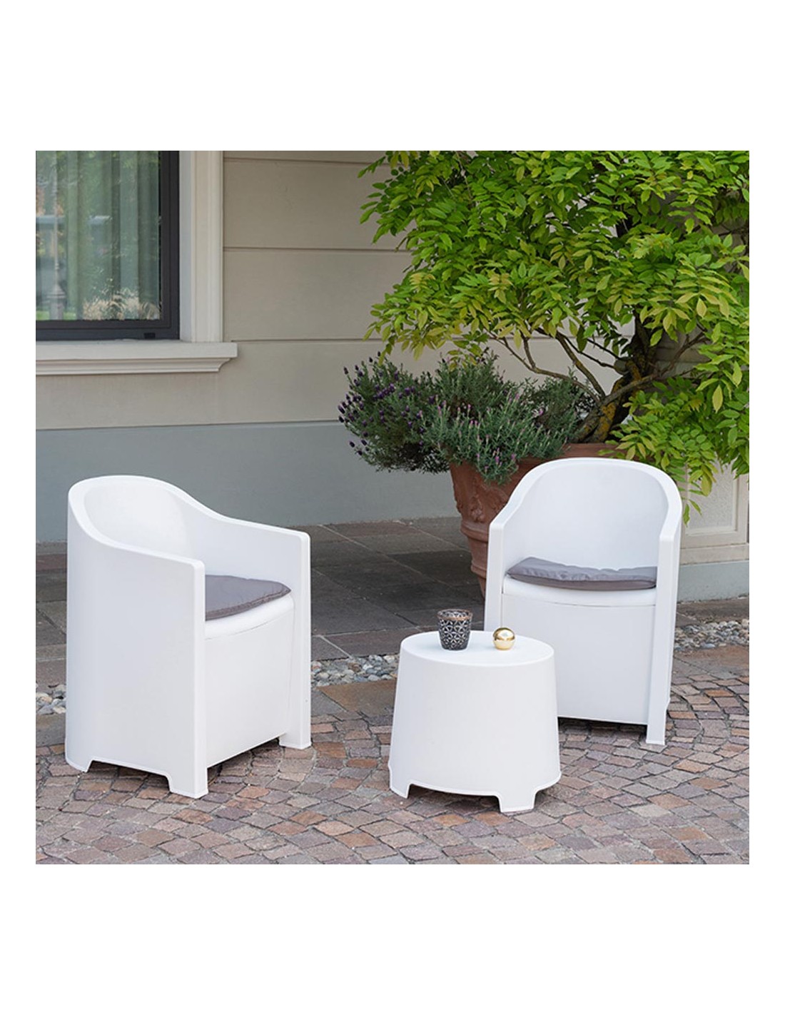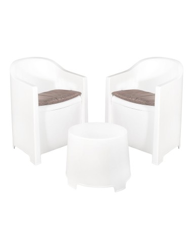 Conjunto terraza luna sluc06bg ipae progarden set luna blanco compuesto por 2 butacas con cojín y 1 mesita auxiliar