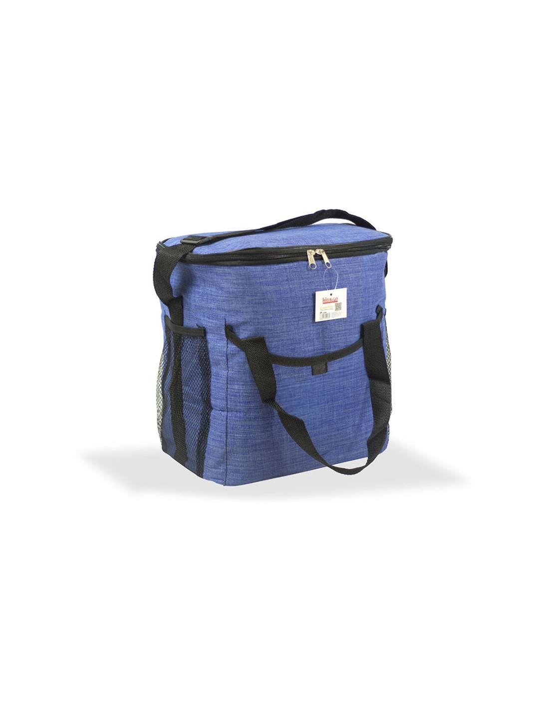 Nevera diseño tejana con asa color azul 21 l con revestimiento isotérmico epe de 5 mm. medidas: 37,7 x 20 x 33 cm