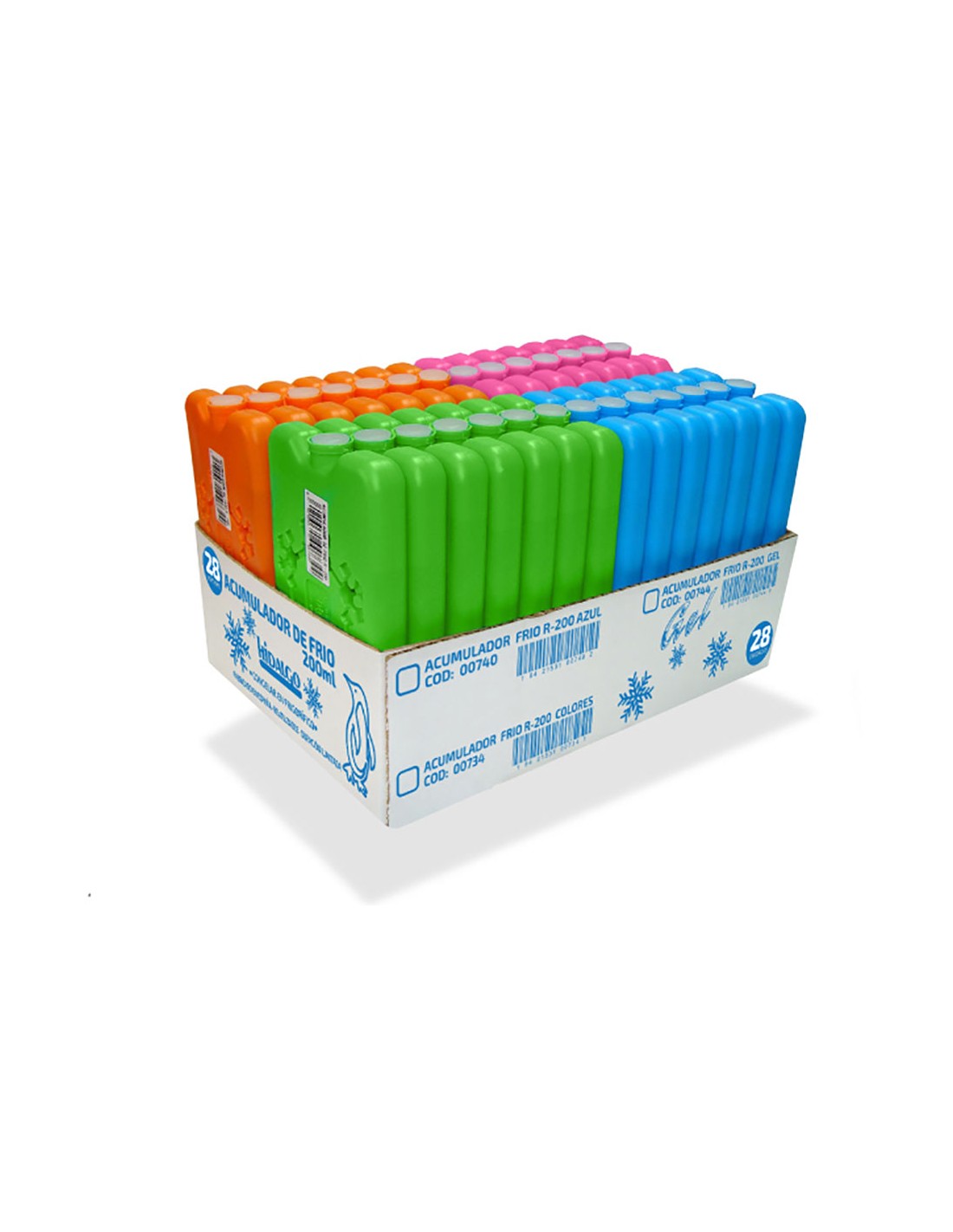 Acumulador de frio r-200 colores surtidos hidalgo. para neveras portátiles 200ml. medidas:17x10x2cm (ancho/fondo/alto) material: polipropileno. colores surtidos.