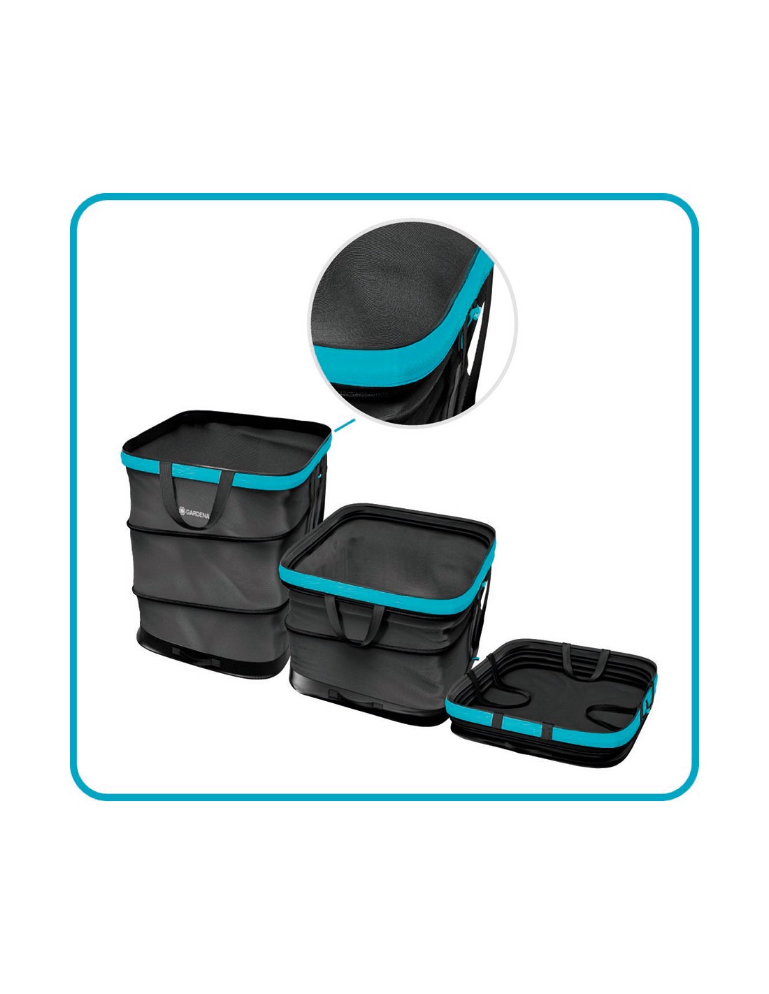 Saco de jardín cuadrado pop up 127 l para recoger hojas o residuos en el jardín, fabricado con un 70 % de poliester reciclado. su forma cuadrada asegura una recogida ergonómica y un fácil transporte gracias al fondo reforzado fabricado con un 70 % de poliester reciclado