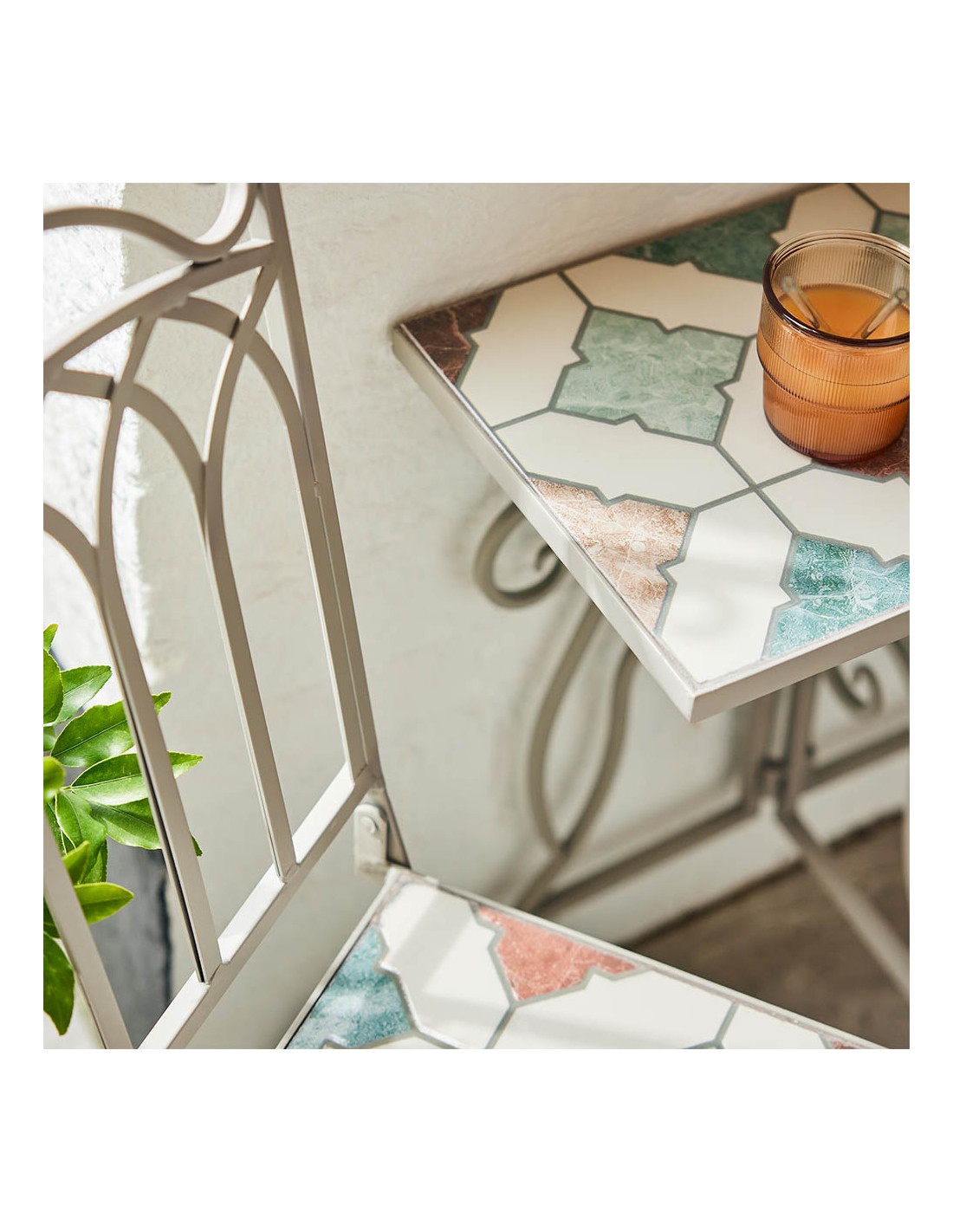 Silla plegable modelo bistro para balcón mosaico marrakech. medidas: 38 x 50 x 89 cm