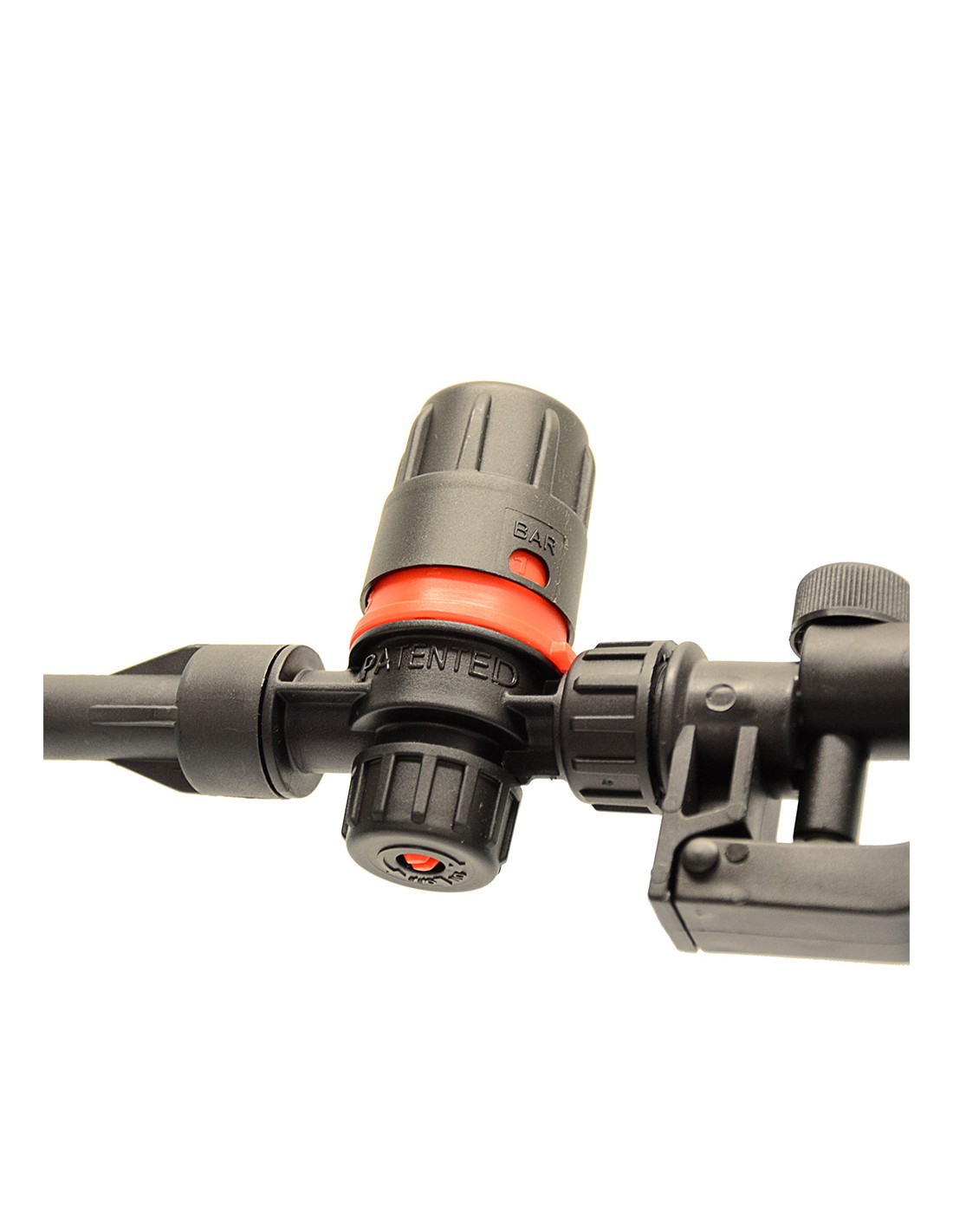 El regulador de presión, permite suministrar una cantidad constante de líquido y producto adecuada al tratamiento que se va a realizar. todo en uno, 4 configuraciones fácilmente accionables girando la empuñadura superior (1,2,3 bar) y la abrazadera inferior (on, off). segun estandar uni en iso 19932.