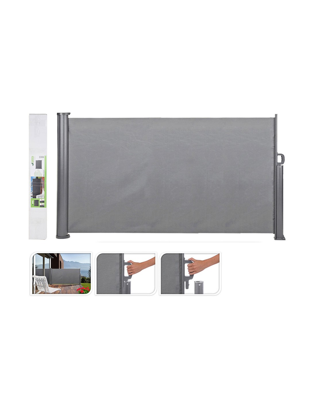 Paravientos lateral 3 m para jardín o balcón. el marco está hecho de aluminio y la tela de poliéster tiene un revestimiento repelente al agua. el cassette de pared está equipado con un sistema de resorte estable para que la pantalla se enrolle automáticamente. medidas: 3 x 1,4 m