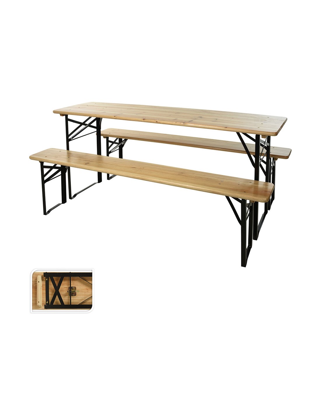 Conjunto de 3 piezas de madera, mesa y dos bancos (peso máximo admisible 250 kg), medidas: mesa 180 x 50 x 76 cm bancos 180 x 25 x 46 cm