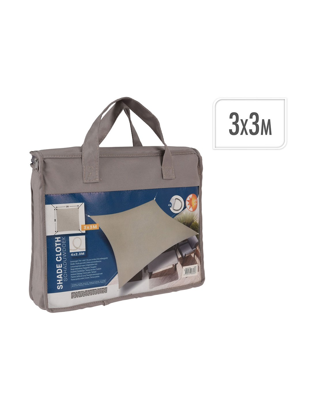 Tela cuadrada para sombrear, resistente al agua, con protección anti uv 50+, incluye 4 cuerdas de 2,3 m. color taupe, densidad: 170 gr/m, medida: 3 x 3 m