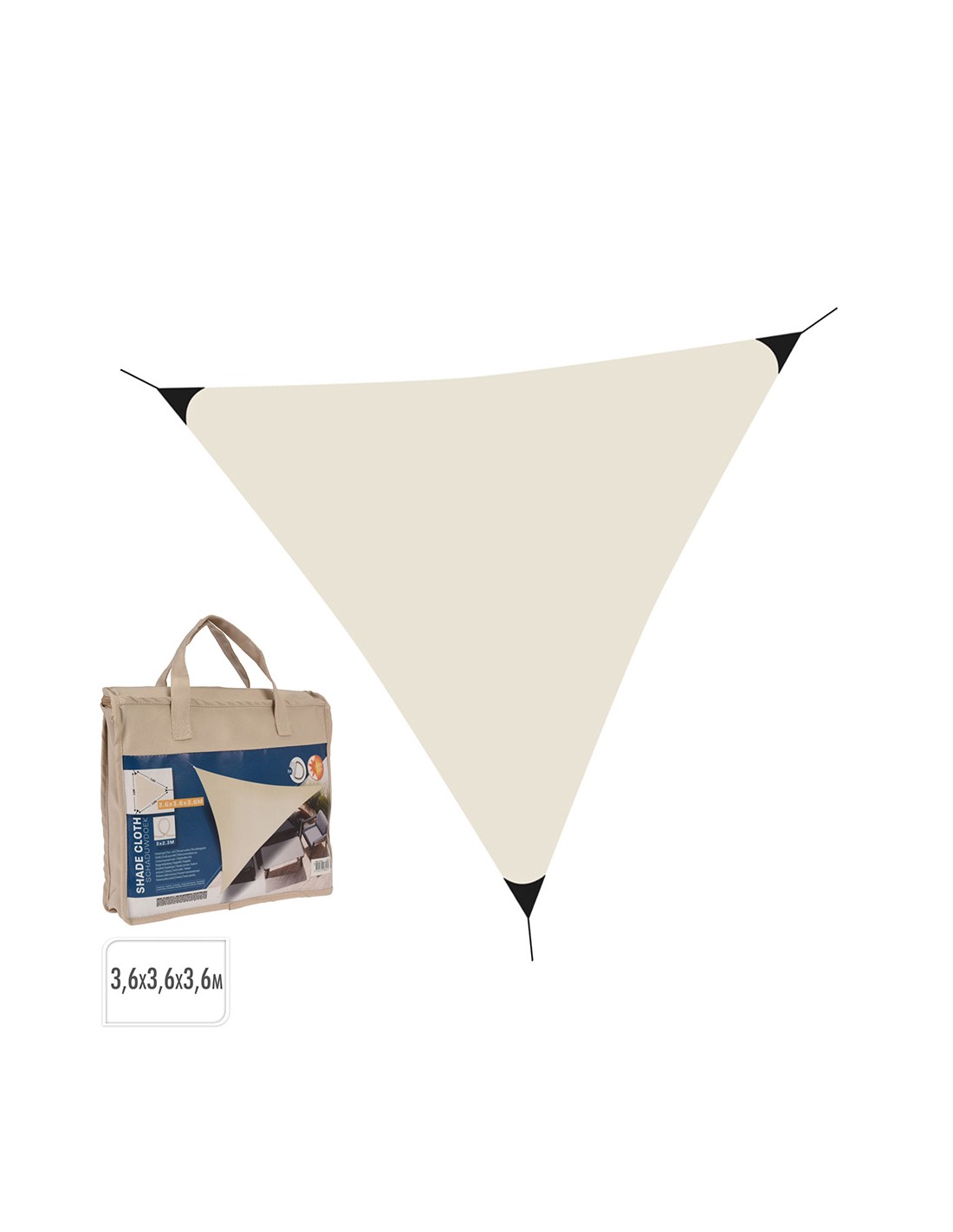 Toldo vela triangulo color crema, 3,60 x 3,60 x 3,60 m, 170 gr/m, resistente al agua, upf clasificación 50+, anillas de metal, 3 cordones de 2,3 m, bolsa con cremallera (300 x 60 x 255 mm)